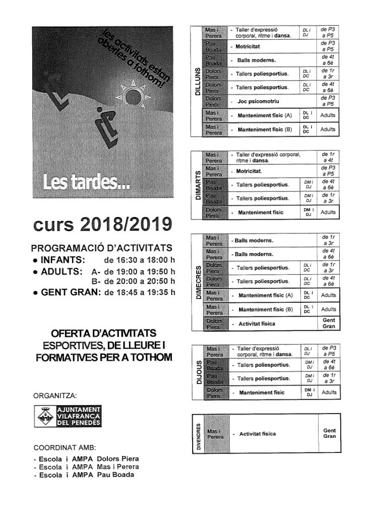 Les tardes… Curs 2018-2019 Llegeix més »