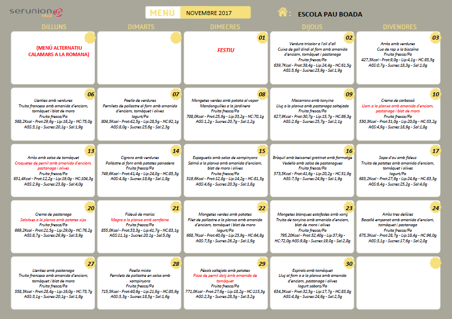Menú de novembre Llegeix més »