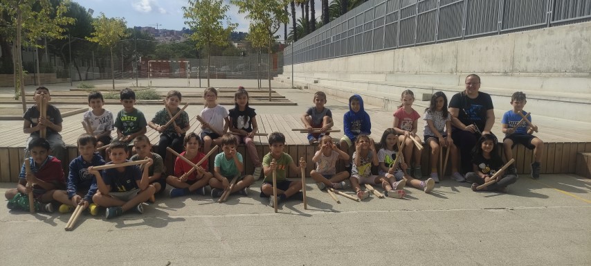 L’alumnat de 3r vam gaudir divendres d’un taller de ball de bastons a càrrec de la Núria, bastonera de la Colla d’Horta. Ens va mostrar quines són les peces de roba que fan servir els balladors i balladores, quin és el seu nom i com es posen.