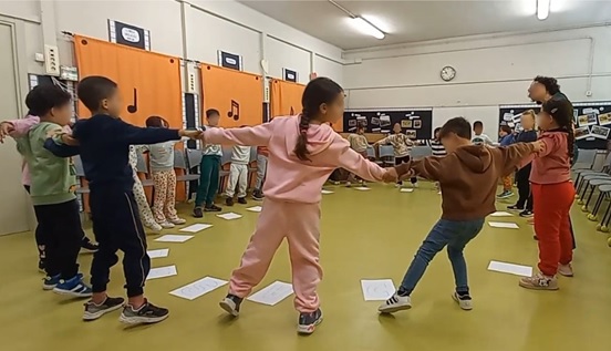 Tot passa pel cos. Perquè allò que es viu és més fàcil d’integrar i entendre. I és d’aquesta manera que es genera conversa musical, curiositat i escolta activa. L’alumnat agafa seguretat amb el propi moviment, entén les emocions i guanya en autoestima. Les propostes són molt variades i apleguen diferents tipus d’elements, en funció del que la música ens expressa (moviments amb fulls, mocadors, ocellets de paper,…).