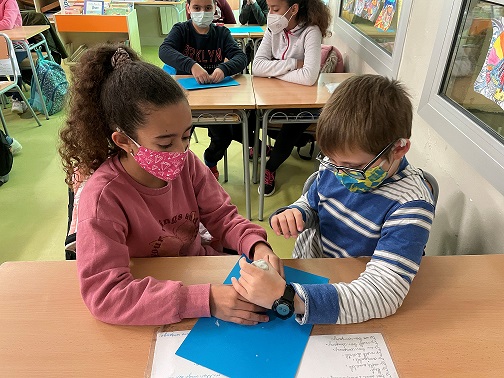 Finalment, cada parella d’artistes ha mostrat, a la resta d’infants, la seva obra d’art argumentant el motiu de la seva forma. Amb aquestes creacions, han representat sentiments viscuts per les persones desplaçades.
