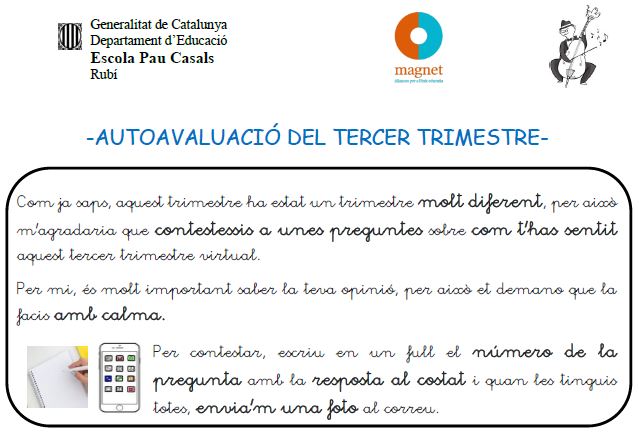AUTOAVALUACIÓ C. INICIAL (SETMANA DEL 8 AL 12 DE JUNY) 1r i 2nPer admin / 6 de juny de 2020 / #ACTIVITATS CONFINADES CICLE INICIAL Curs 2019-20