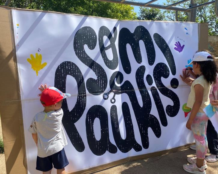 Un cop superats tots els reptes, cada grup ha deixat la seva empremta al mural SOM PAUKIS per tal d’adquirir la recompensa del treball cooperatiu i en equip que han realitzat.