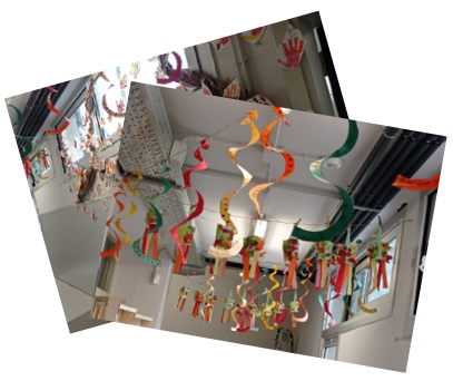 El passadís s’ha omplert de color: groc, marró, taronja i vermell, amb uns fanalets de paper de seda que els nens i les nenes han enganxat.