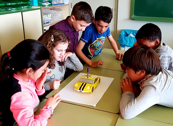 Gràcies als seus precisos moviments, l’alumnat ha pogut crear dibuixos i treballar els polígons.
