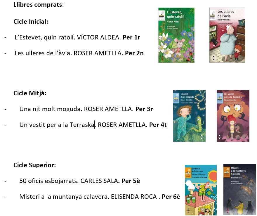 Per tal d’engrescar l’alumnat de Primària a llegir i gaudir de la lectura, des de l’escola s’ha adquirit un llibre per cada nen i nena. Una novel.la per a tot l’alumnat de Primària.