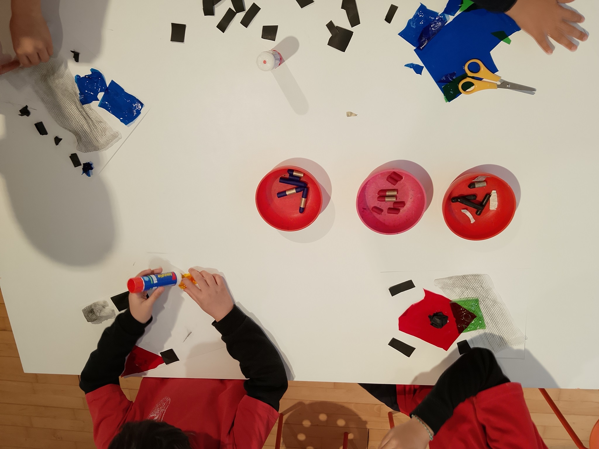 La setmana de Carnaval, els nens i nenes de tercer vam fer una activitat molt especial a plàstica. Primer van pintar una làmina lliurement, utilitzant pintures de molts colors, fent punts i ratlles, deixant volar la seva imaginació.