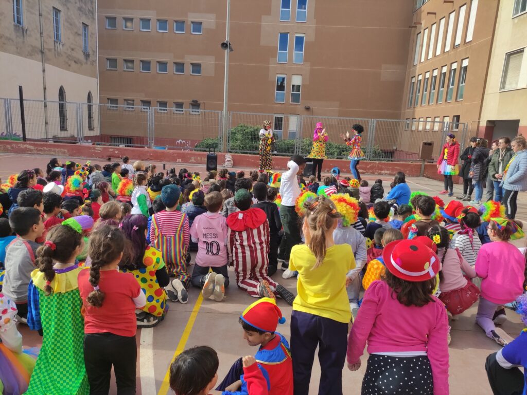 Avui hem celebrat la festa de carnaval a l’escola. Al matí el Rei Carnestoltes i la Concubina ens han visitat per les classe acompanyats dels timbalers de l’escola! Hem pogut ballar amb tots ells i elles i fer-nos una foto! A la tarda, hem pogut gaudir de la fantàstica actuació de les 3 pallasses de