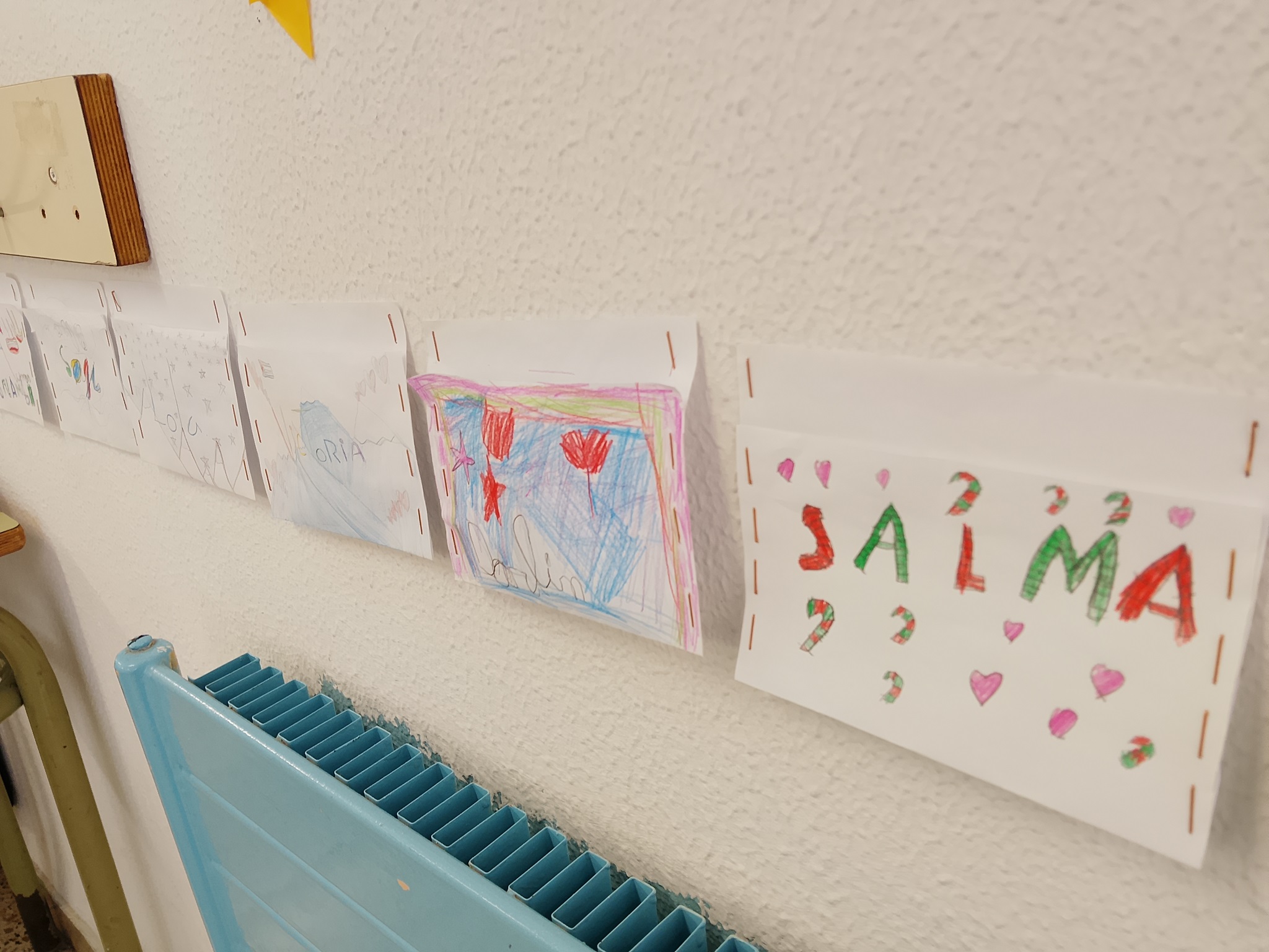 Després, hem volgut fer extensiu aquest aprenentatge a tota la classe amb una activitat creativa. Hem dissenyat sobres on podrem escriure missatges d’agraïment als nostres companys i companyes, i també hem elaborat cors de cartolina que simbolitzen aquest sentiment tan important. Cada detall representa una paraula amable, un gest sincer i un “gràcies” dit amb el cor.