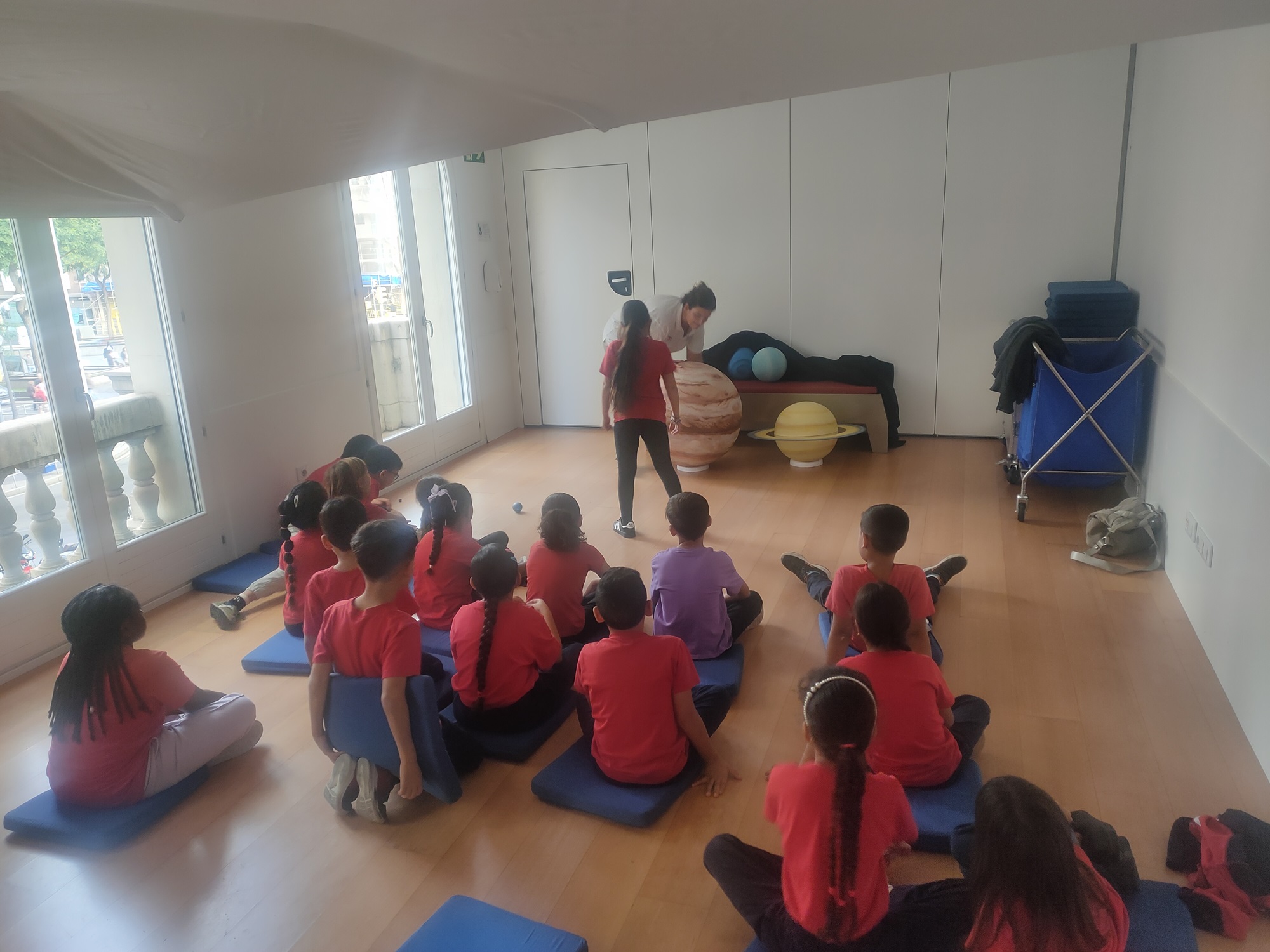 Durant la visita, l’alumnat va poder descobrir alguns dels secrets de l’Univers a partir de rèpliques de planetes i explicacions visuals que els van ajudar a imaginar com és el nostre sistema solar. També van poder veure vídeos sobre les constel·lacions més famoses i conèixer les formes i històries que s’hi amaguen.