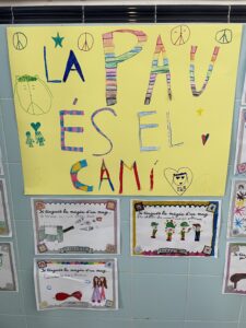 Finalment, hem fet cartells i lemes per demanar la pau al món, i ho hem exposat tot al passadís de davant la classe.
