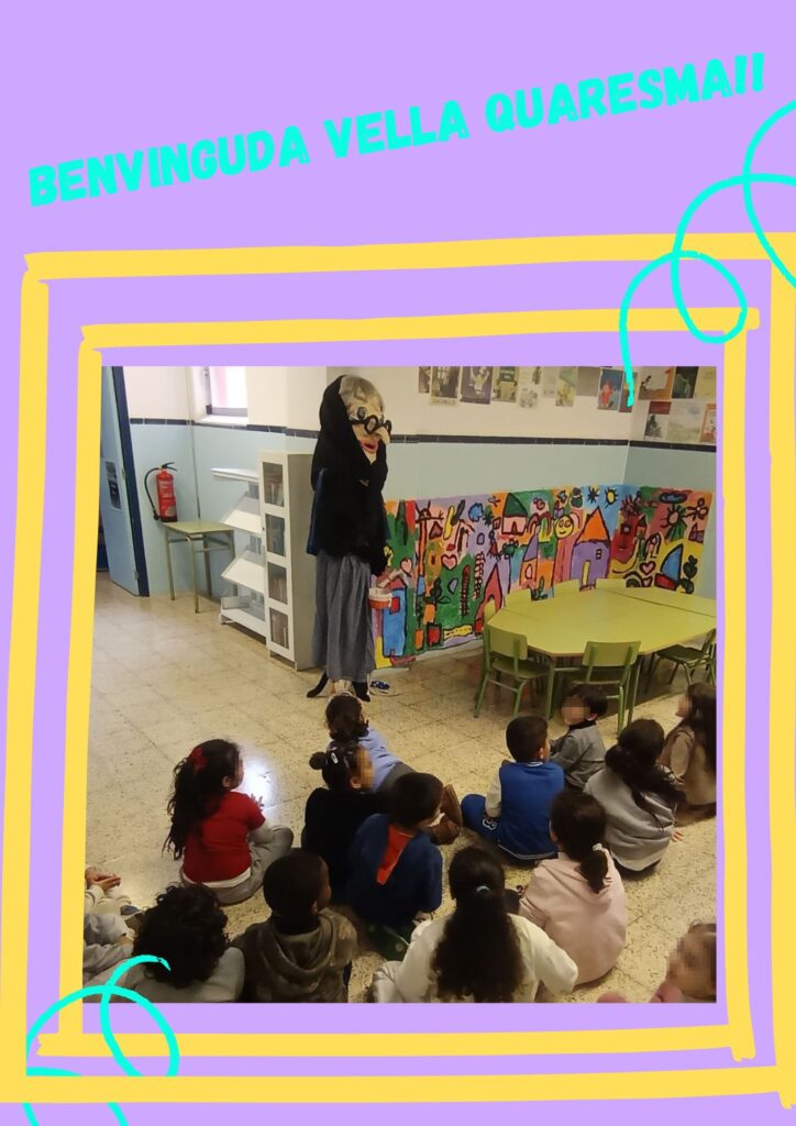 El passat divendres va arribar a l’escola la Vella Quaresma! Ho va tenir complicat perque té moltes cames i s’entrebanca! Així que els nens i nenes d’educació infantil, cada setmana li treuran una cama per a que pugui caminar!!