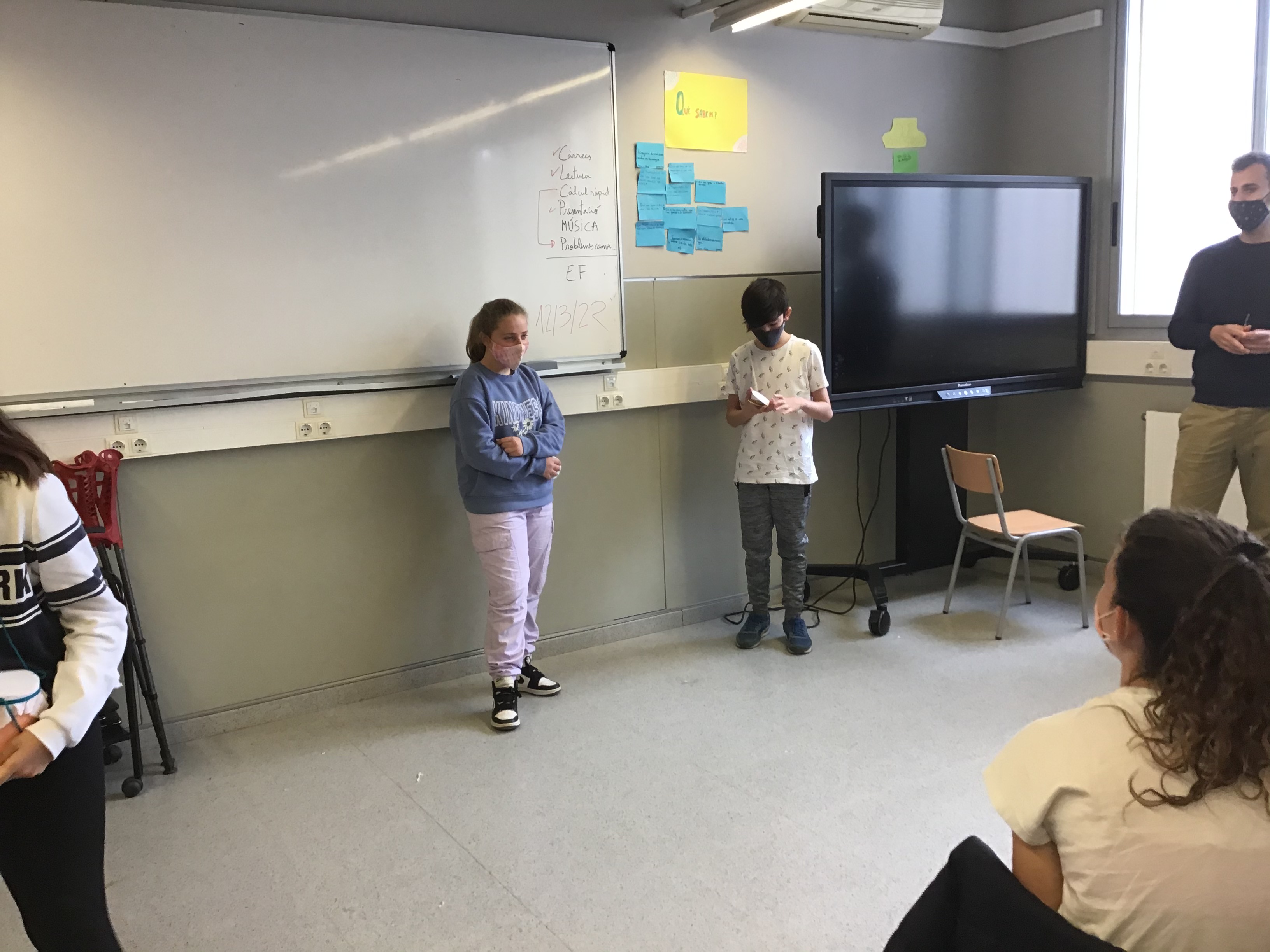 17/03/21Aquesta tarda hem fet una activitat musical per comprovar el nostre sentit del ritme. En grups de 4 alumnes hem hagut de preparar-nos una cançó, ballant-la fent sonar diferents parts del nostre cos.