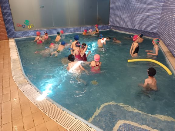 A LA PISCINA ENS ENSENYEN A NEDAR, A PARTIR DE DIFERENTS EXERCICIS I JOCS.
