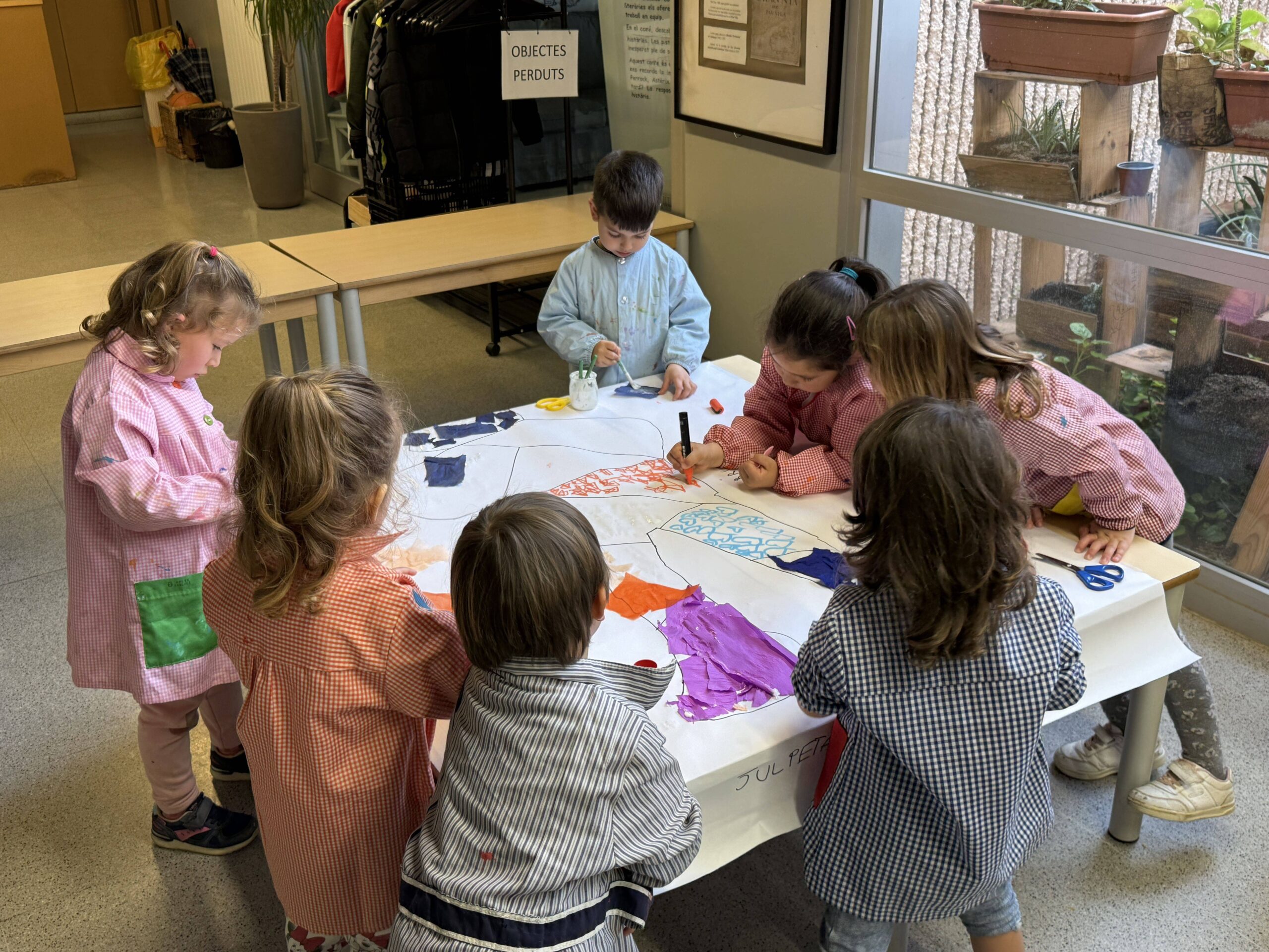 INSPIRANT-NOS EN LA SEVA OBRA, ELS INFANTS DE LA COMUNITAT DE PETITS I PETITES HAN EXPERIMENTAT AMB DIFERENTS TÈCNIQUES I MATERIALS. AIXÍ, HEM CREAT DES DE QUADRES AMB COLORS I LÍNIES, FINS A SILUETES FETES AMB EL COS HUMÀ, I FINS I TOT EDIFICIS DE FANG QUE RECORDEN A LES SEVES ESTRUCTURES.