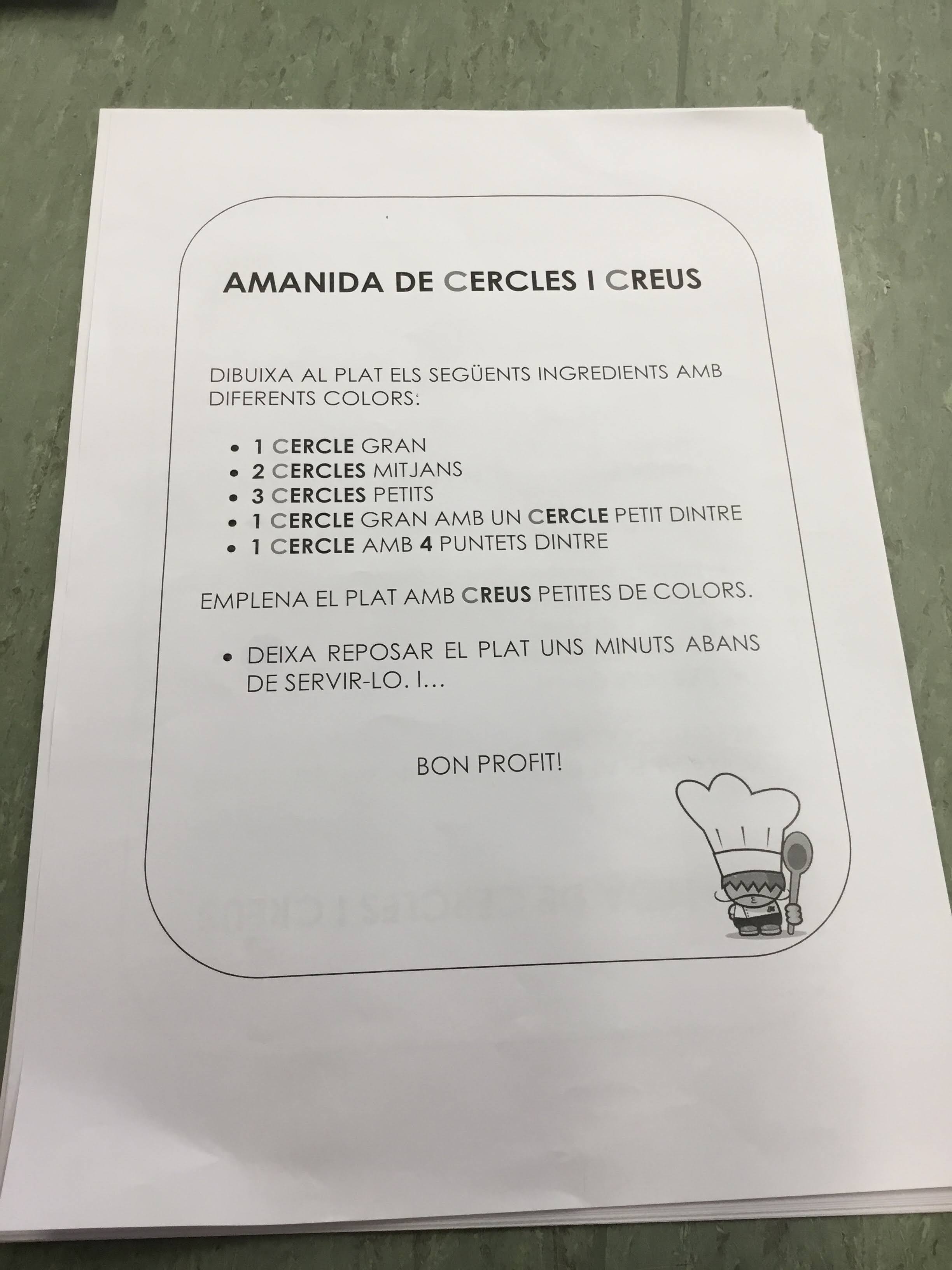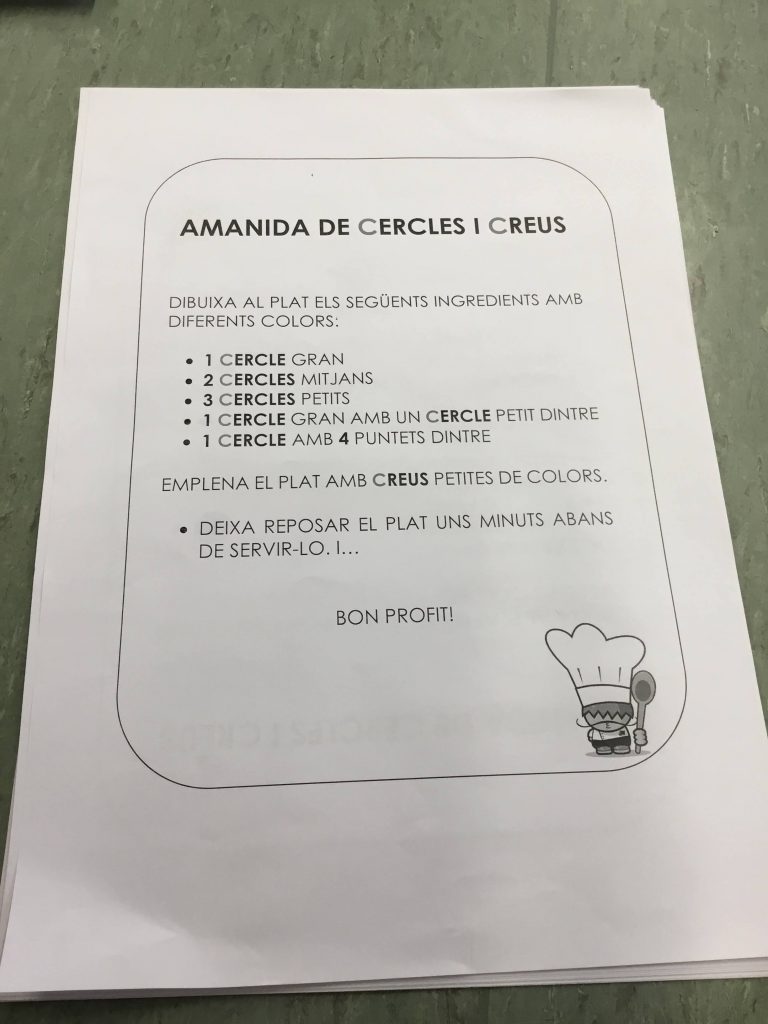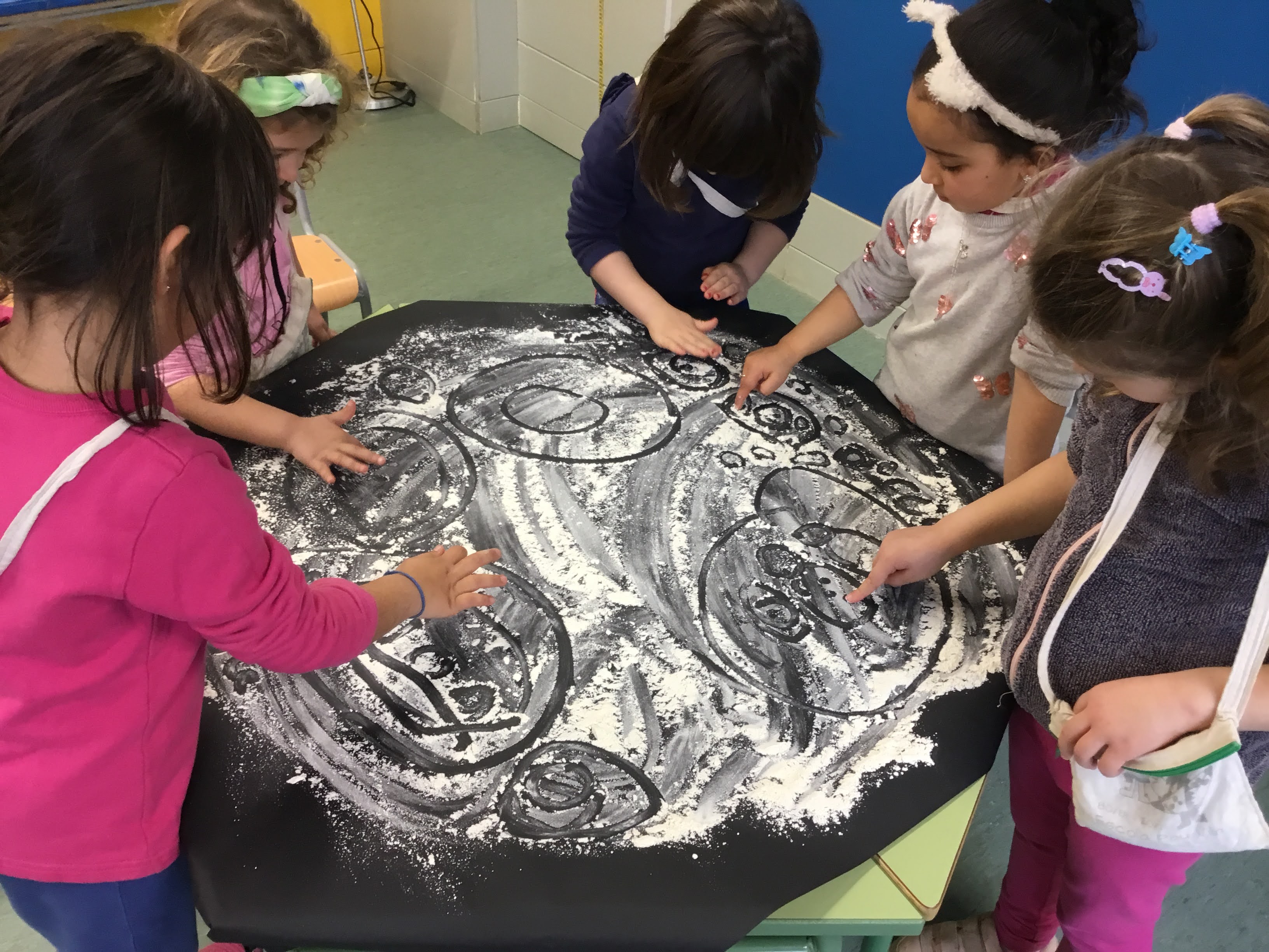 PRIMERAMENT, CUINEM LA RECEPTA D’UNA MANERA BEN VIVENCIAL: AMB FARINA! CUINEM LA RECEPTA AMB ELS NOSTRES DITS, FARINA I SEGUINT LES INDICACIONS. NECESSITEM MOLTA CONCENTRACIÓ PER NO EQUIVOCAR-NOS.