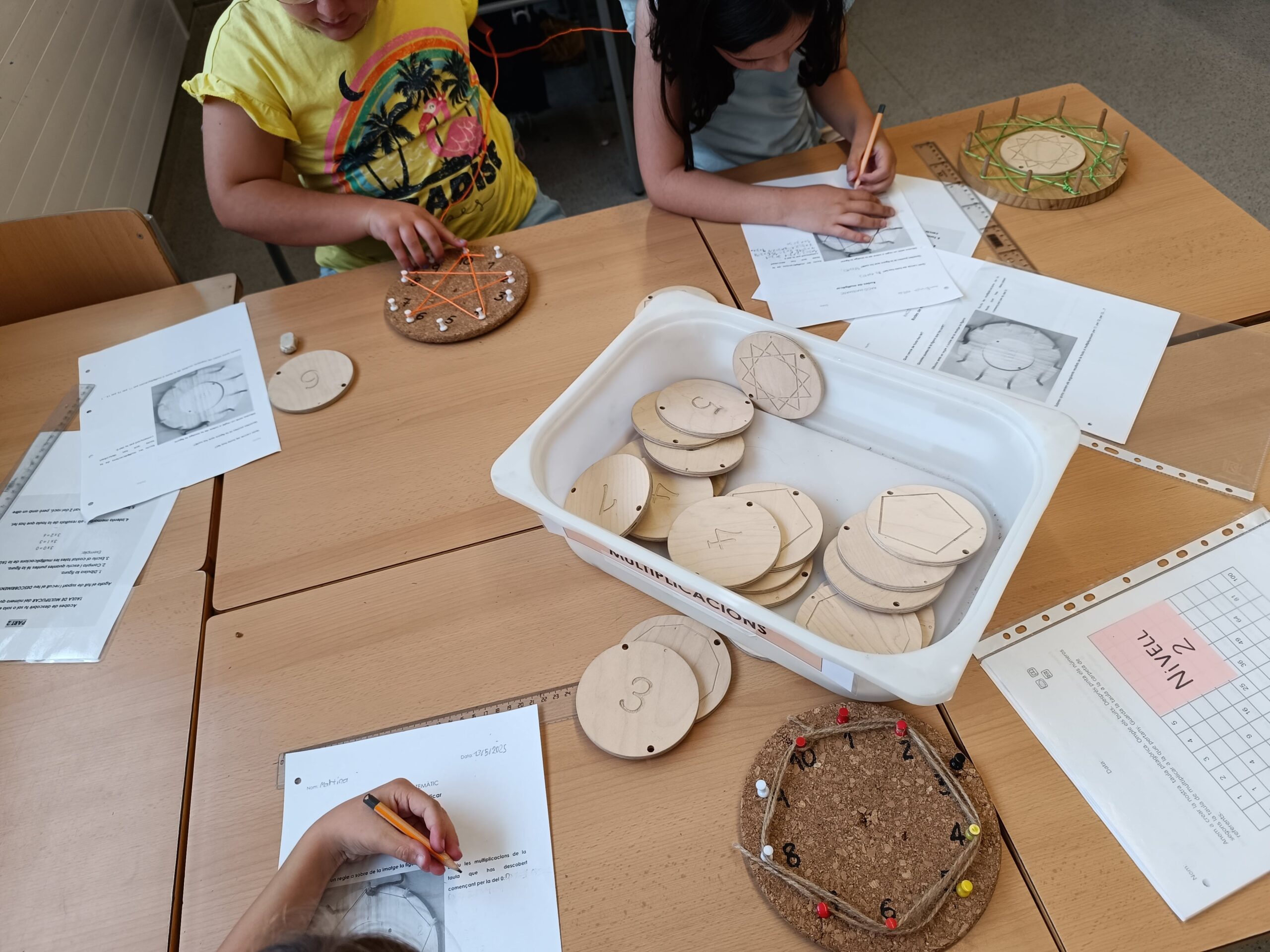 I, per últim, Rodes de multiplicar, un racó per treballar les taules de multiplicar d’una manera lúdica i manipulativa. Amb jocs i dinàmiques visuals, reforcem el càlcul mental i la comprensió dels patrons numèrics.