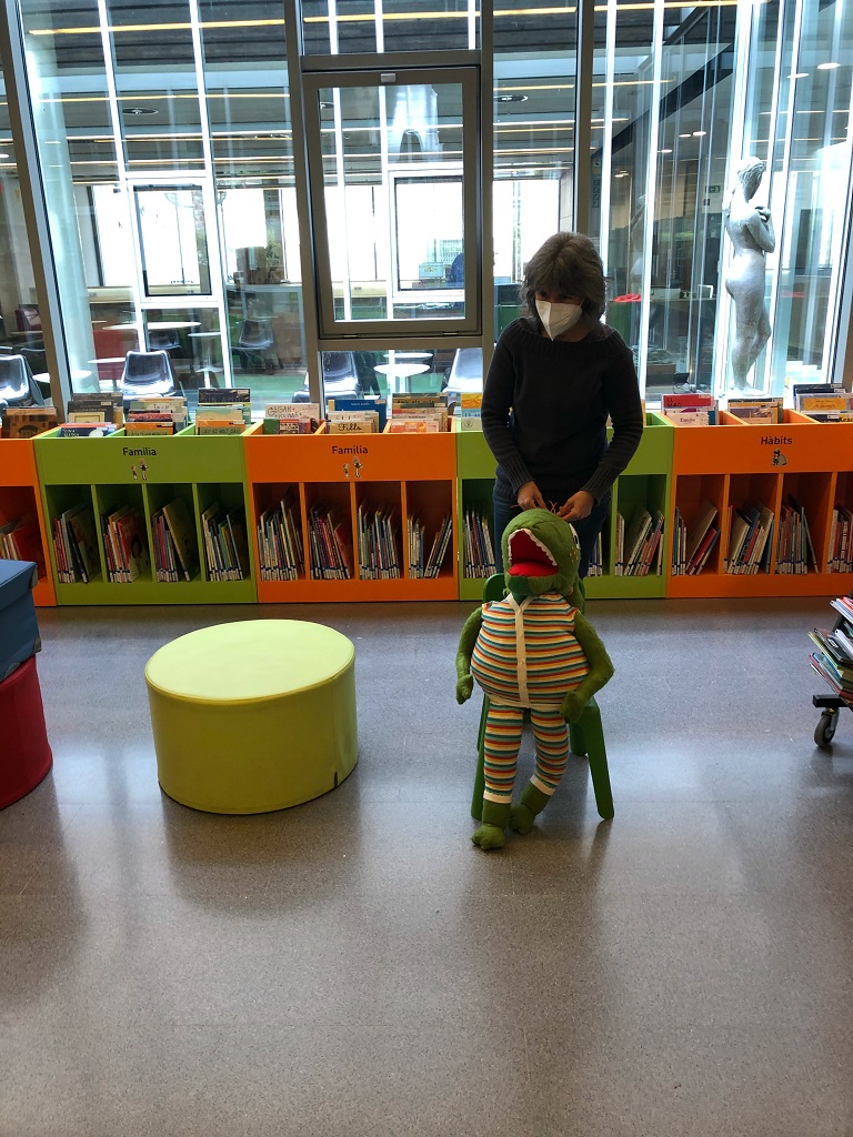 UN COP VAM SER A DINS, LA MARIA JOSÉ ENS VA PRESENTAR A LA MASCOTA, EL LLIBRESAURUS.