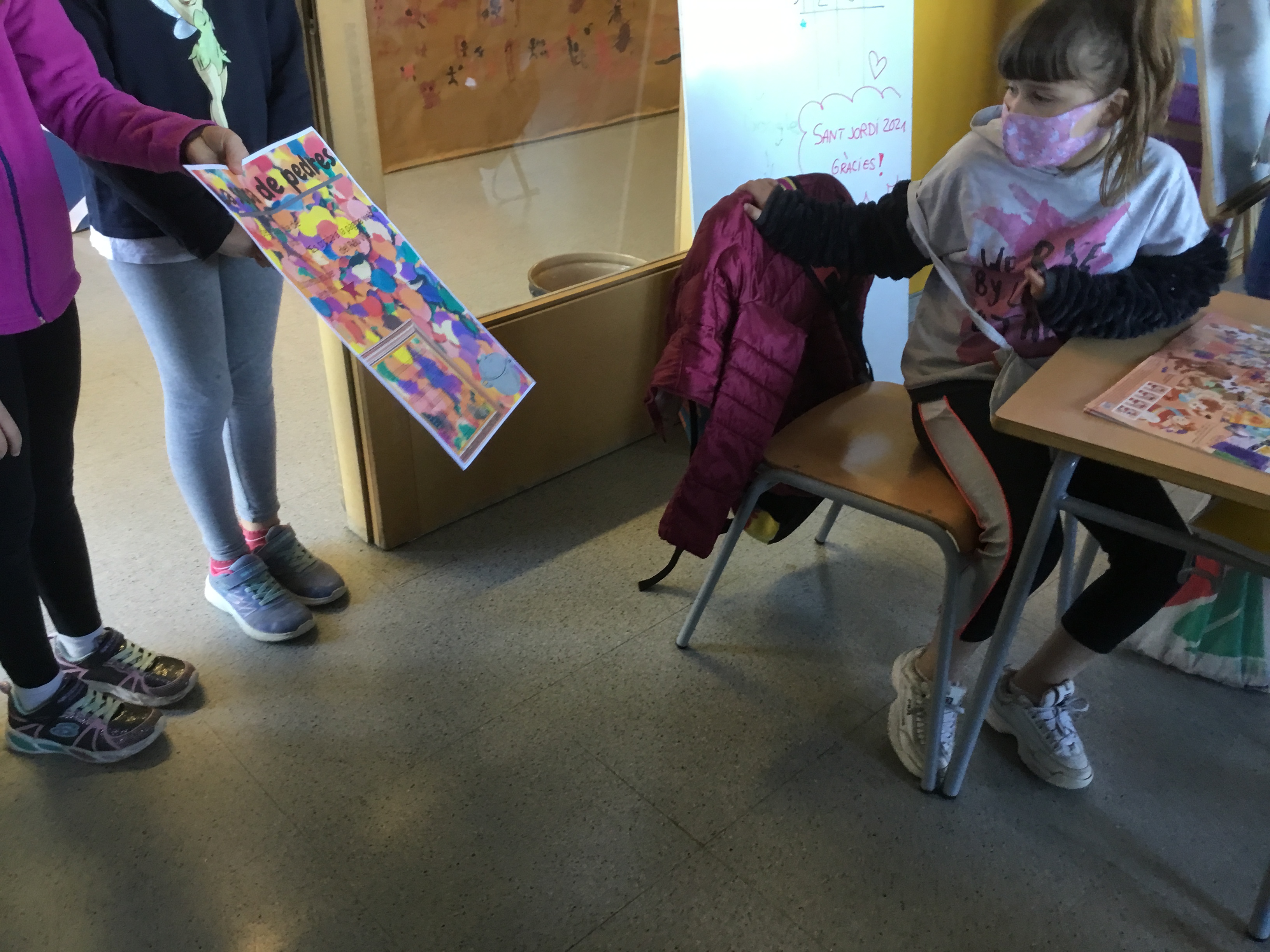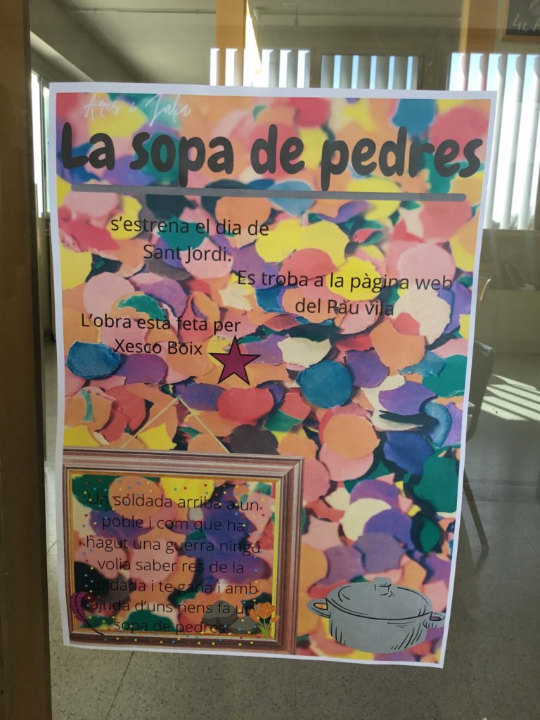 Els companys/es de 4t van realitzar una obra de teatre: “Sopa de pedres”. Ho van fer molt bé i es van esforçar moltíssim. Estàvem molt emocionats/des perquè dies abans sentíem pels passadissos de l’escola l’anunci de l’obra i teníem moltes ganes de veure-la. Finalment, el dia 23 la vam gaudir a la classe. Quina emoció!