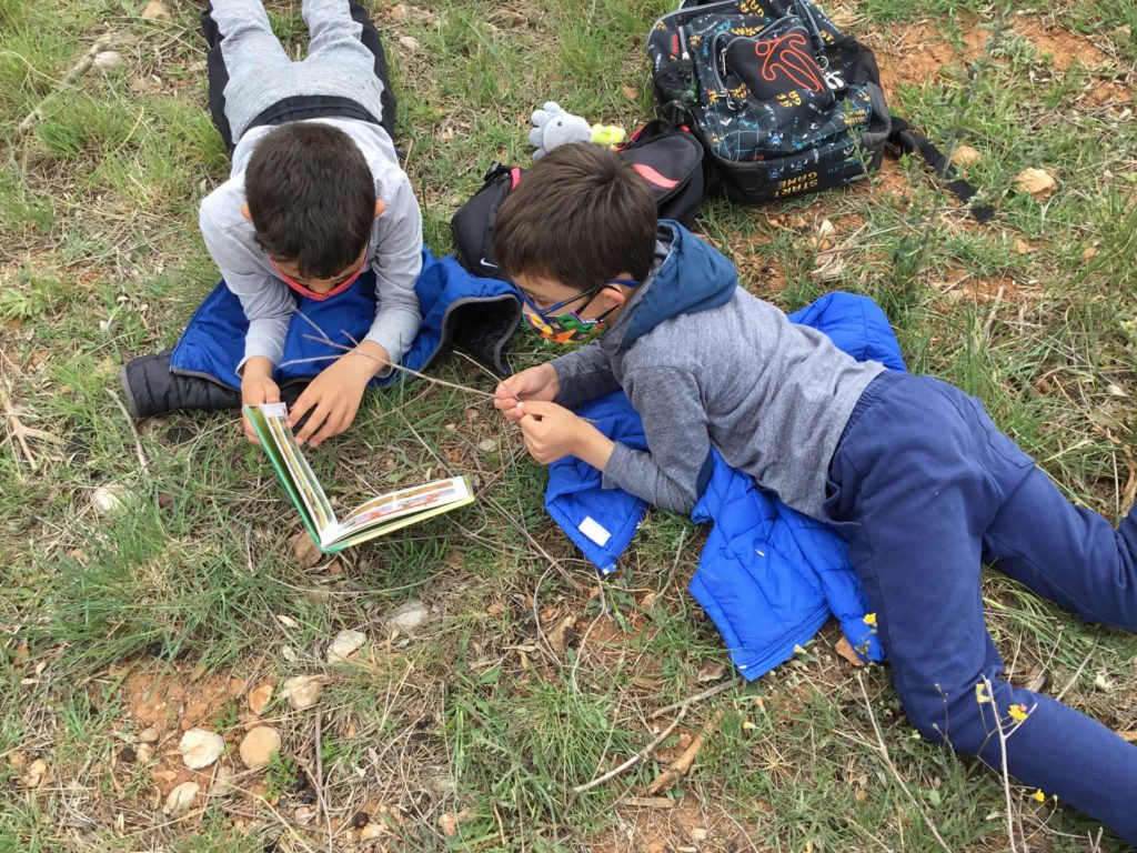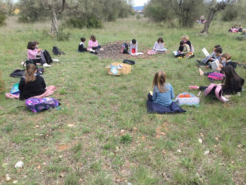 Aquesta mateixa setmana vam gaudir d’una estona de lectura a l’aire lliure. Vam sortir amb llibres i contes que havíem triat i vam seure a les oliveres del costat de l’escola. Allà vam estar llegint molt relaxadament amb els nostres companys i companyes. I tot i que no podíem estar junts del tot, apropet estaven també els nostres companys/es de 2n A i 2n B. El temps va passar volant!!!