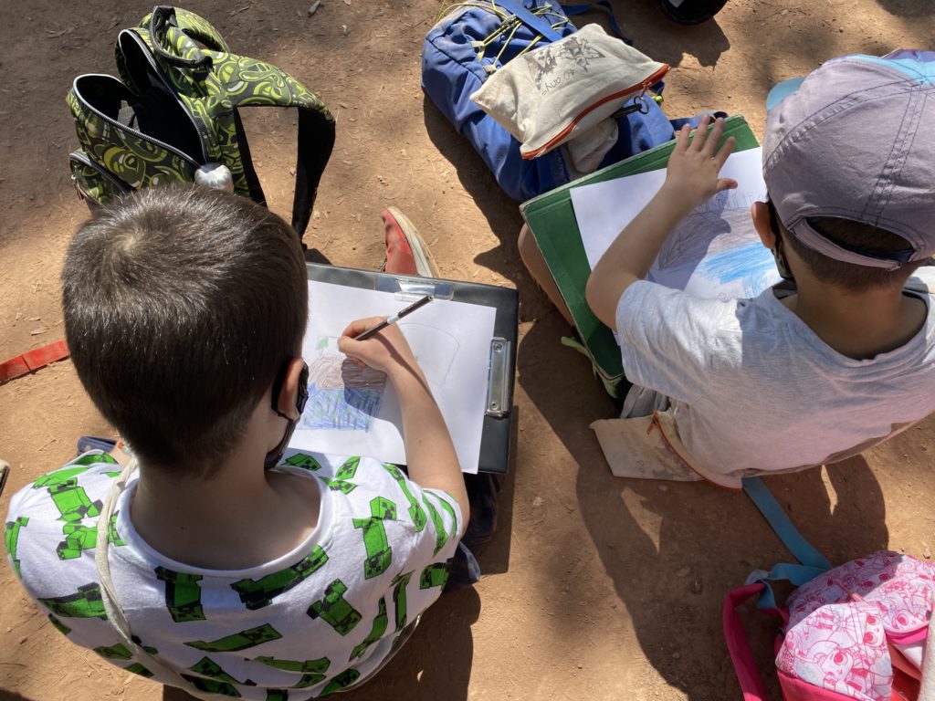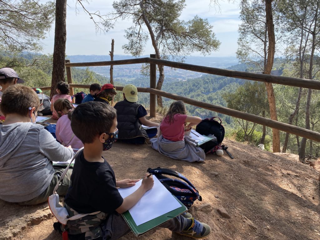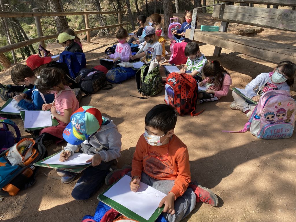 EL DIA DE LA SORTIDA A CAN ROCA, VAM APROFITAR PER ANAR AL MIRADOR A VEURE LES ROQUES BLAVES. A L’ESCOLA HAVÍEM DIBUIXAT COM ENS LES IMAGINÀVEM. ARA, FEM UN DIBUIX AL NATURAL.