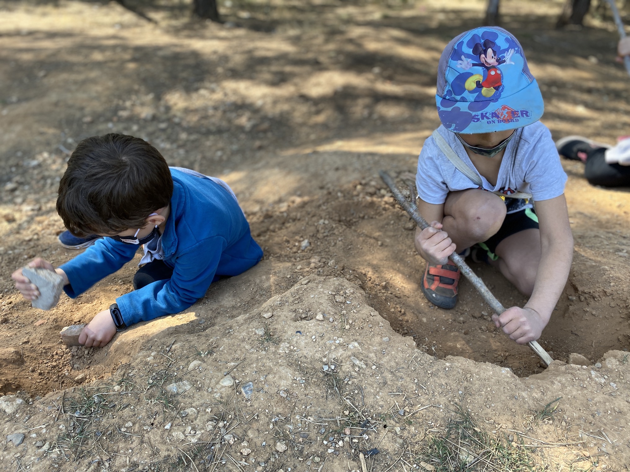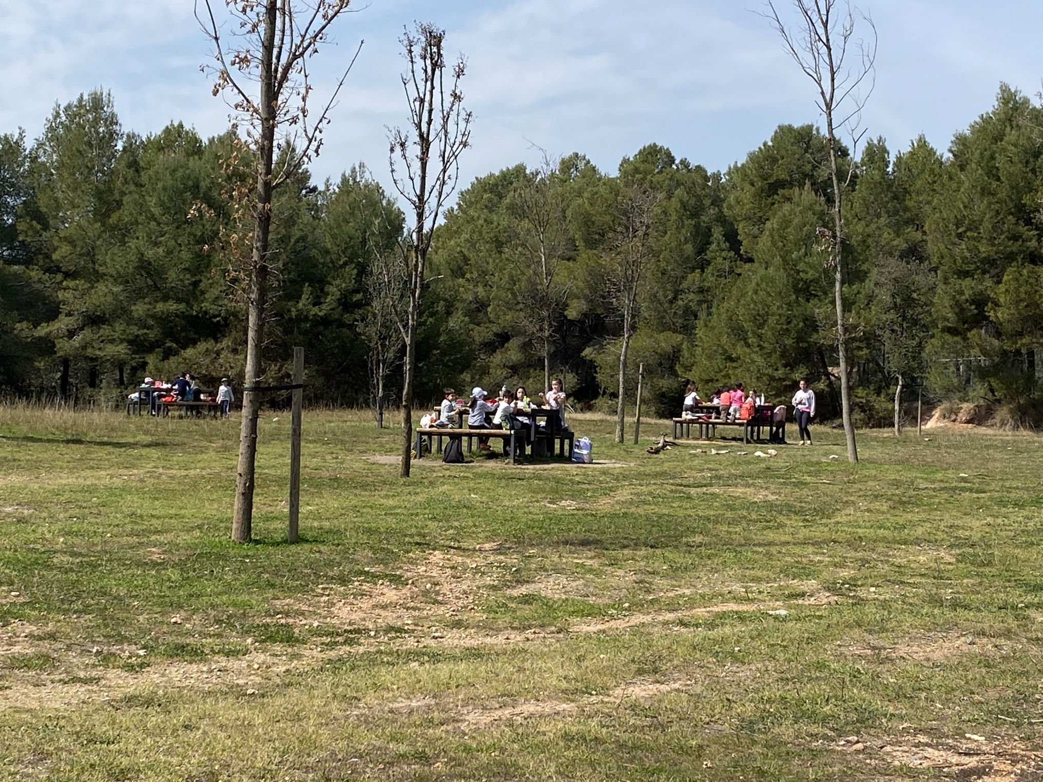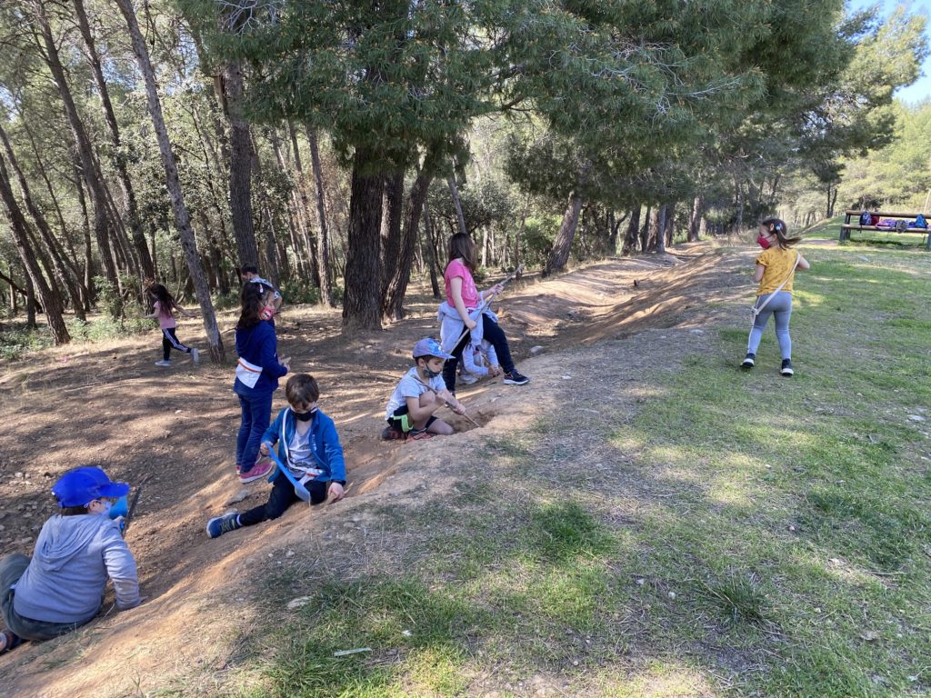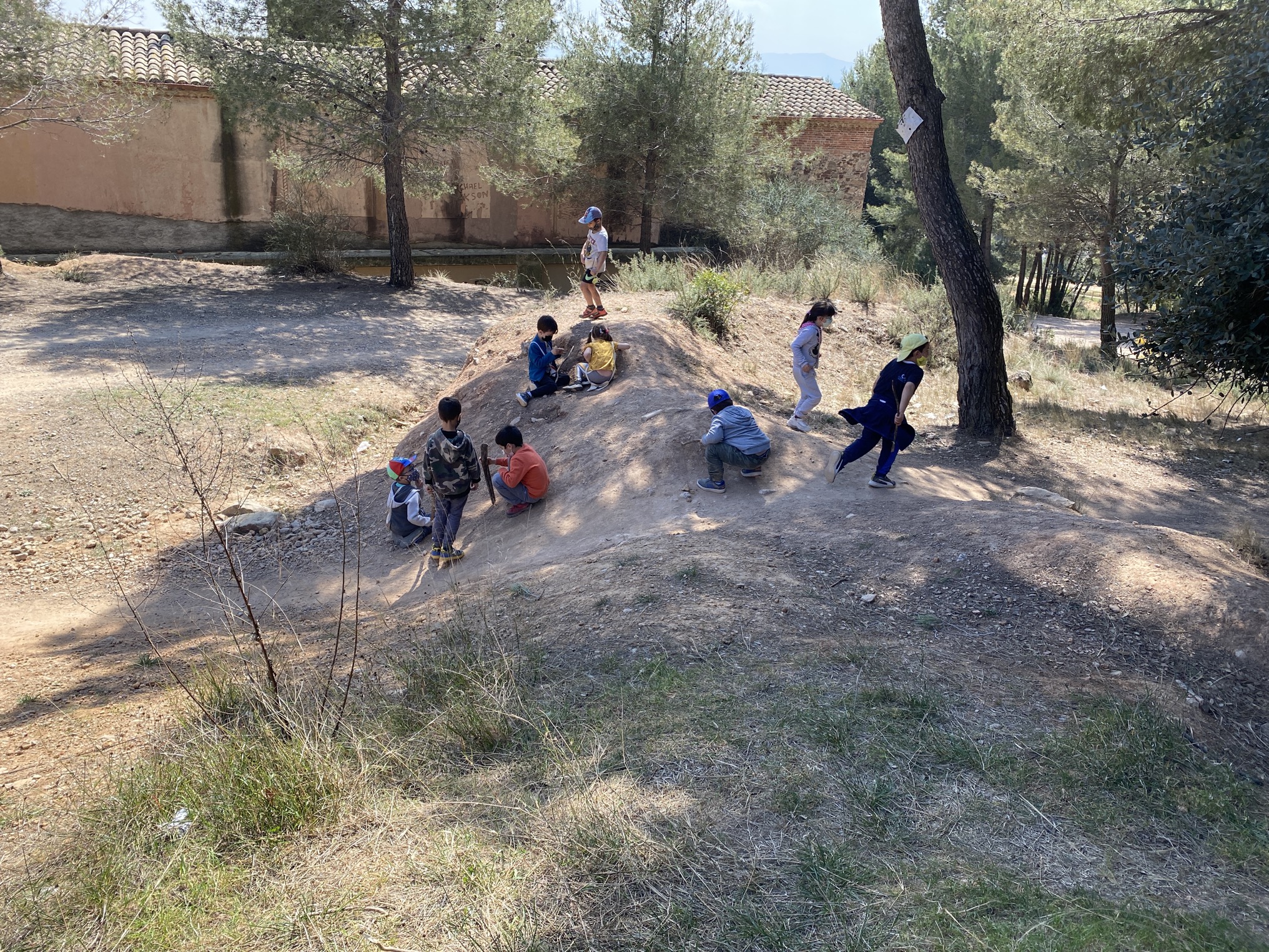 QUAN VAM ARRIBAR VAM TENIR UNA ESTONA PER EXPLORAR LA ZONA I FER JOC LLIURE, UNS VAM SALTAR A CORDA, ALTRES VAM BUSCAR PINYES….