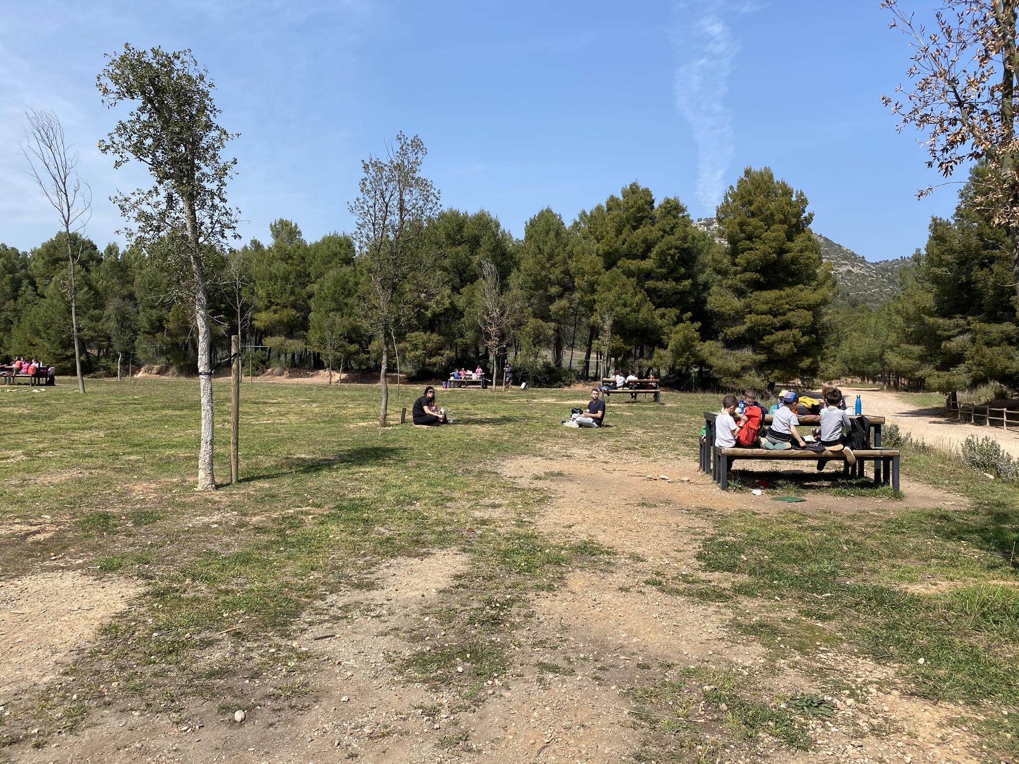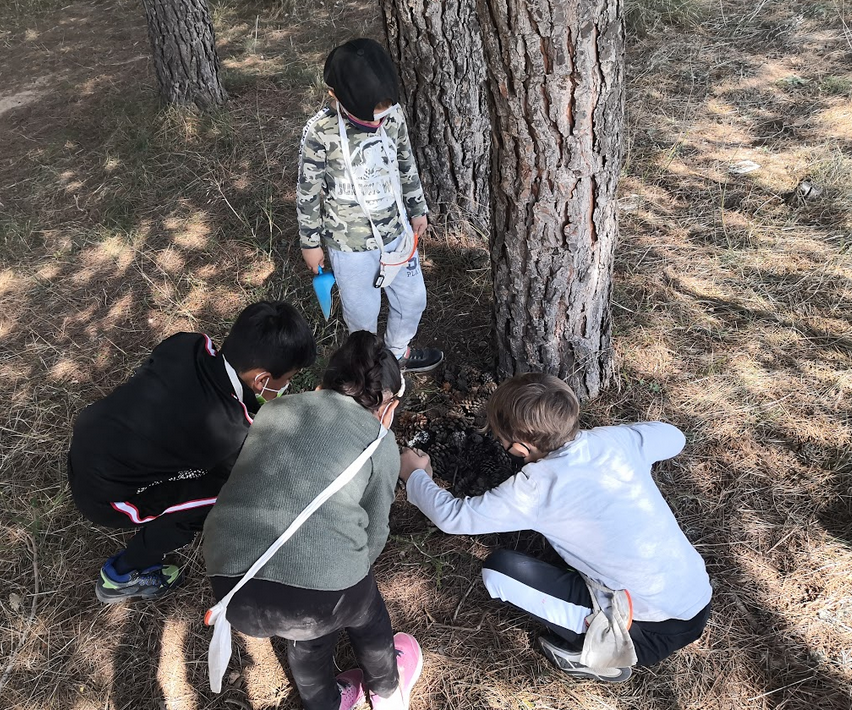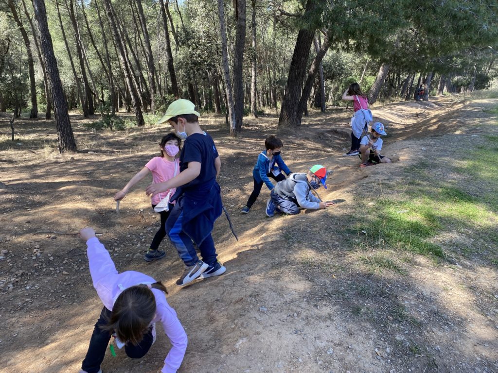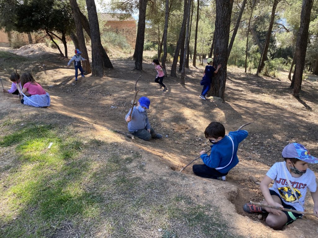 QUAN VAM ARRIBAR VAM TENIR UNA ESTONA PER EXPLORAR LA ZONA I FER JOC LLIURE, UNS VAM SALTAR A CORDA, ALTRES VAM BUSCAR PINYES….