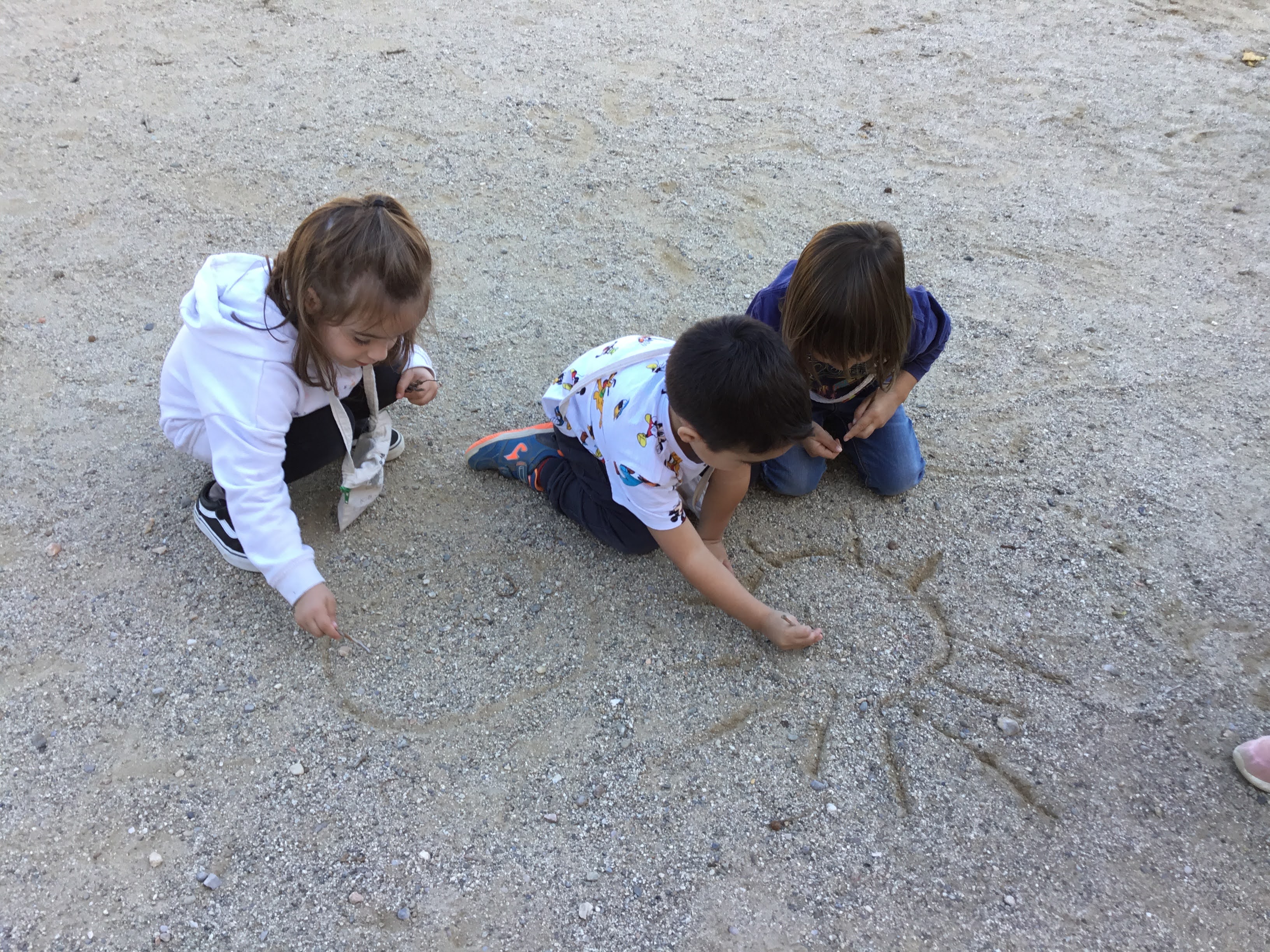 EN LES DARRERES SESSIONS ENS ATREVIM A DIBUIXAR-LES A LA SORRA! AMB UN PAL, ELS TRAÇOS I ELS DIBUIXOS ACABEN PLASMATS A LA SORRA DEL PATI DE L’ESCOLA.