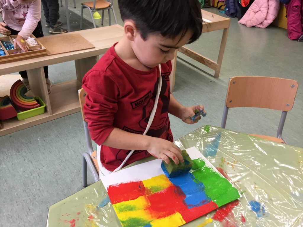 SEGUIM AMB LA MATEIXA OBRA DE L’ARTISTA, AQUEST COP FEM SERVIR ESPONGES RECTANGULARS I PINTURA DE COLORS PER CONFECCIONAR LA NOSTRA OBRA.