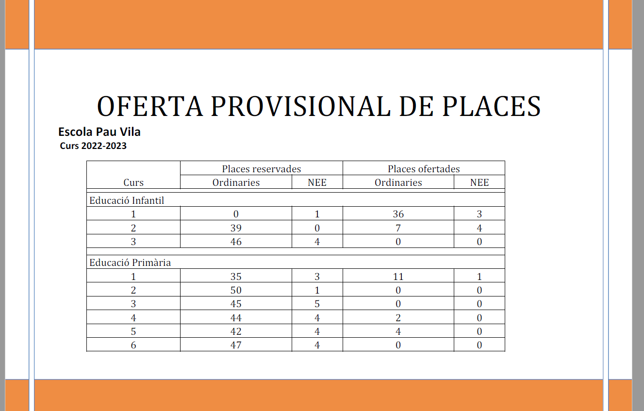 En el dia d’avui s’han publicat la llista d’admesos, la llista de preinscrits i la llista d’espera. Recordeu que tots aquests llistats estan anonimatitzats.