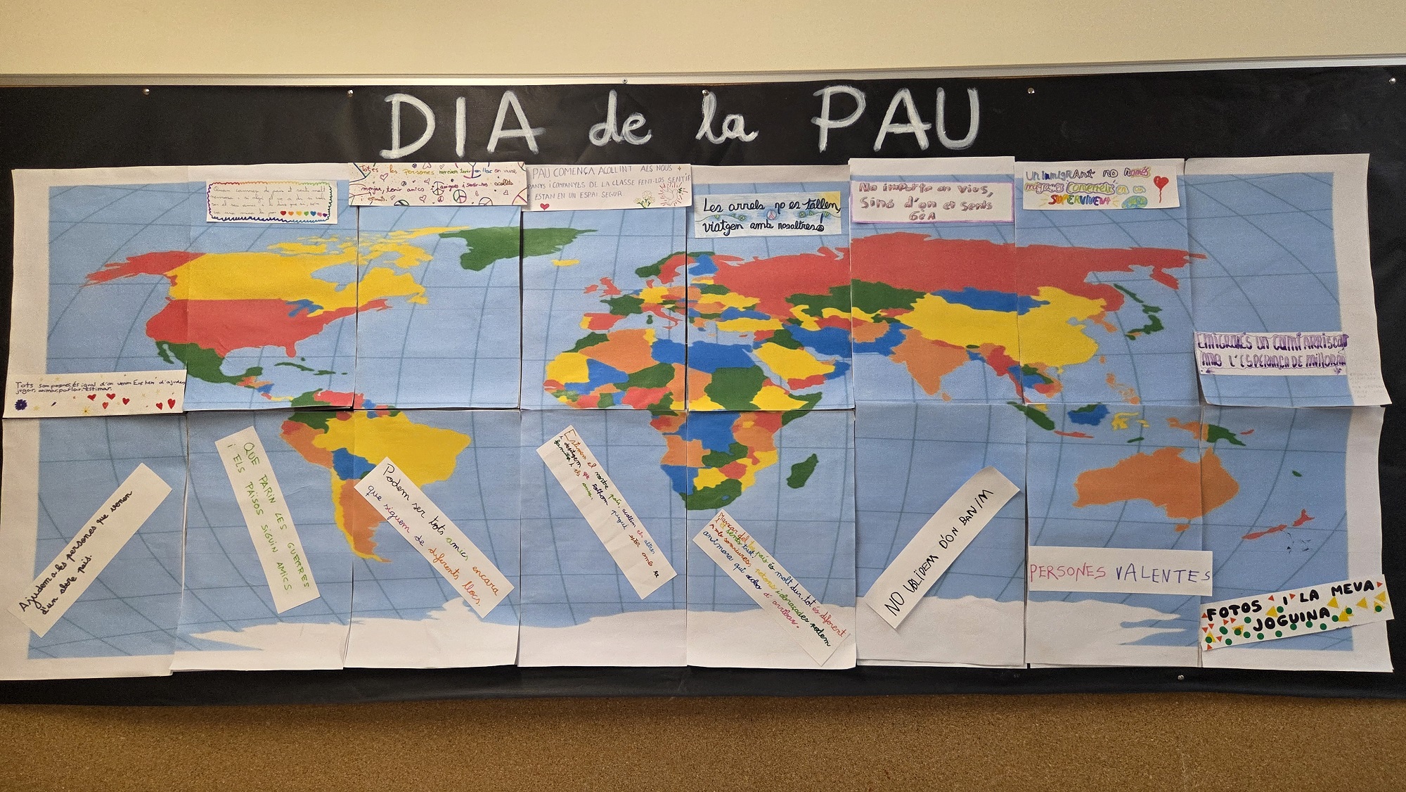 Per tancar aquesta diada, vam construir un mural col·laboratiu amb desitjos i propostes per fer del nostre entorn un lloc més just, amable i ple de pau.