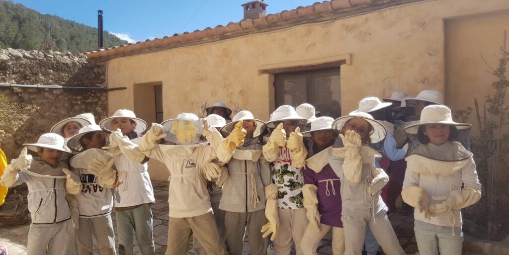 Els infants de 2n hem visitat la Masia Can Pere on ens han ensenyat com les abelles fan la mel, quina funció té l’abella reina, hem fet d’apicultors, hem elaborat una vela de cera i altres activitats interessants!