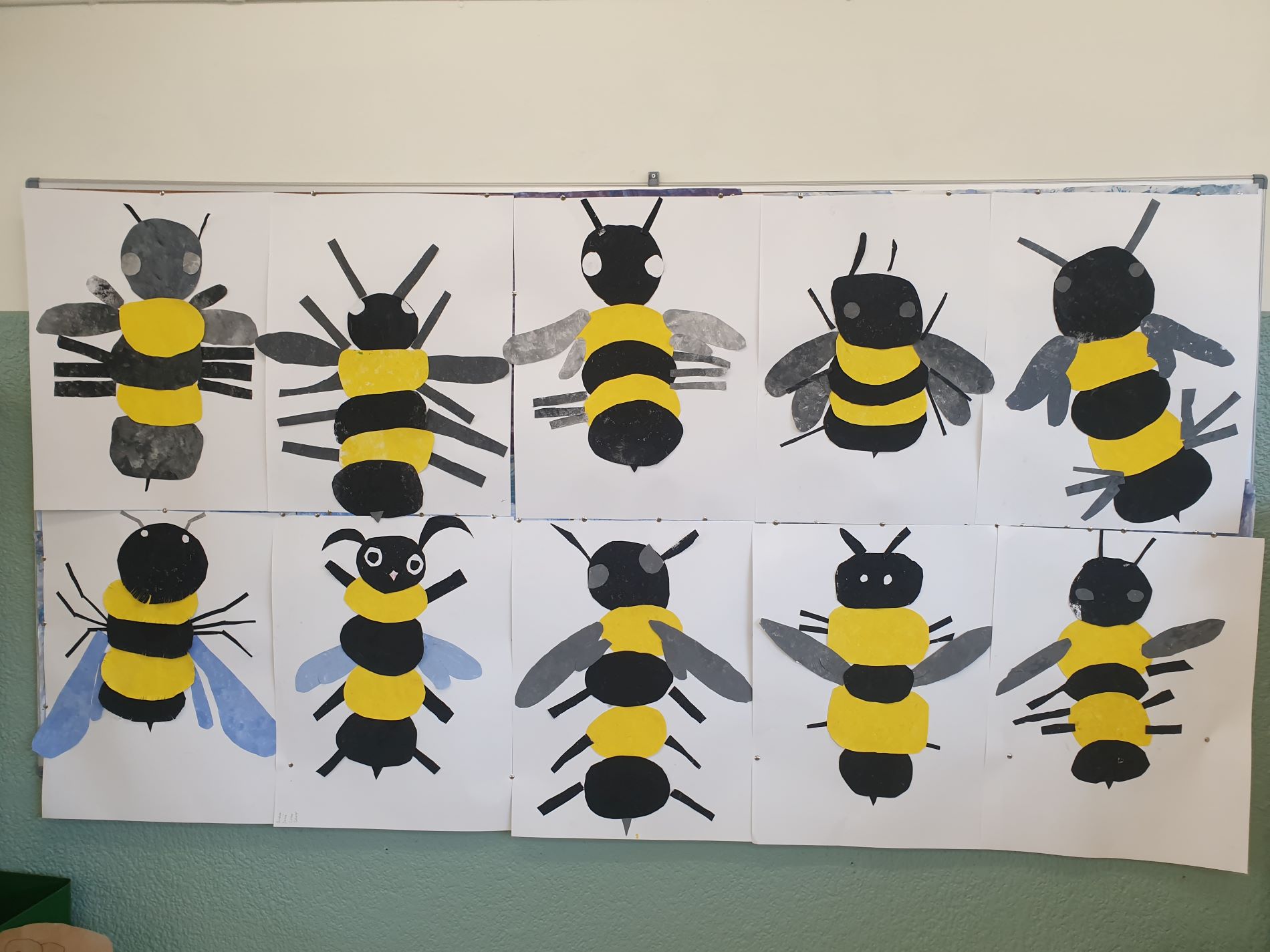 A més a Arts hem creat una abella en grup a través de la tècnica del collage de l’autor i il·lustrador Eric Carle. Mireu quines abelles més xules ens han quedat!