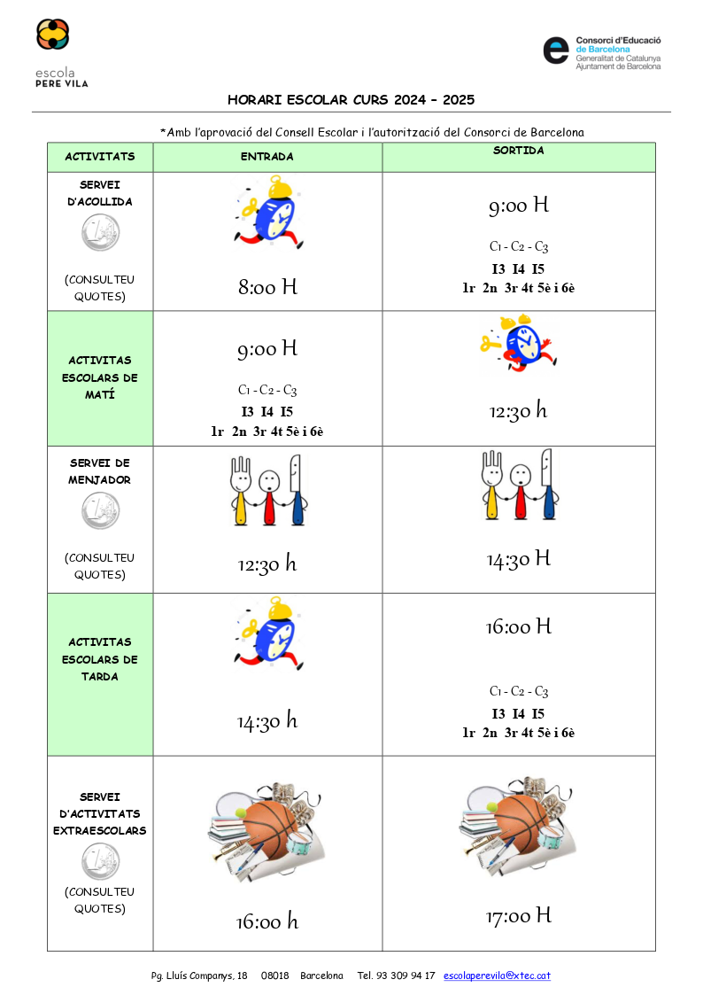 Descarrega’t l’HORARI ESCOLAR 2024-25.