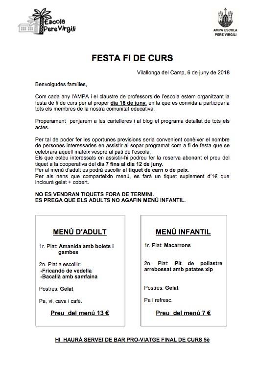 11/06/18INFORMACIÓ SOPAR FI DE CURS