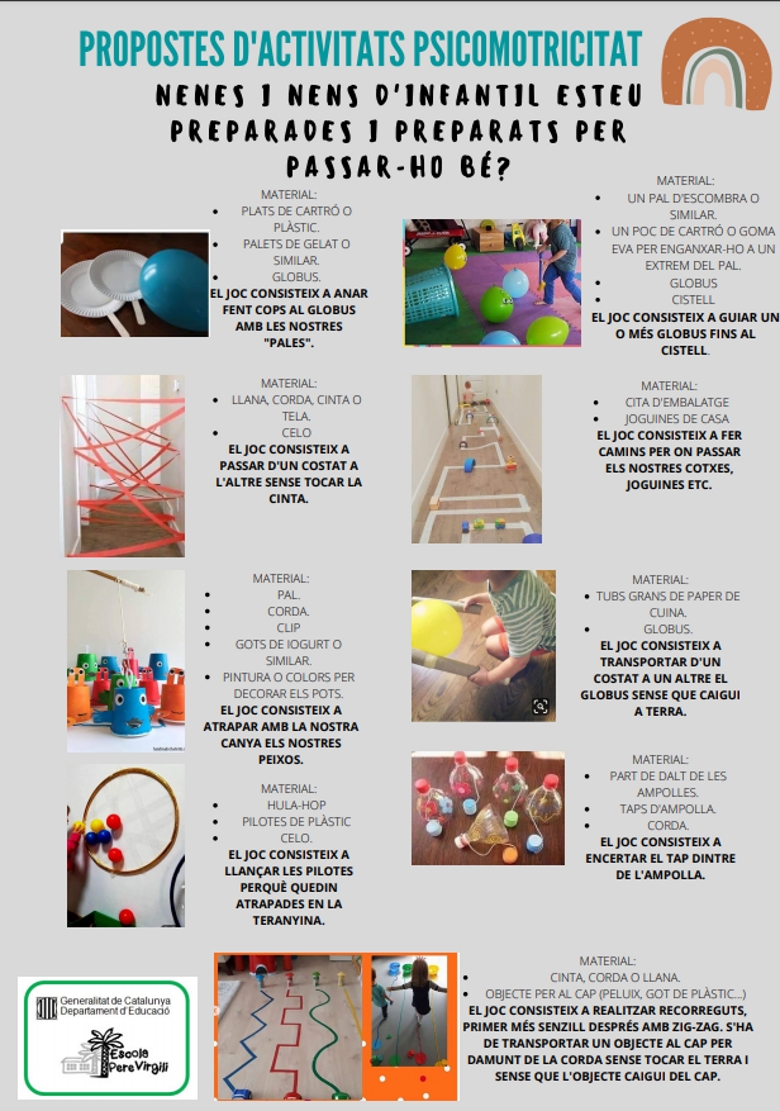 -A través de la web de l’escola us enviarem algunes propostes que podeu anar fent per passar aquests dies.