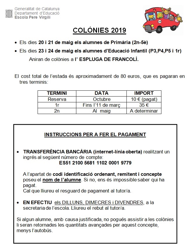 25/02/19Primer pagament de les colònies