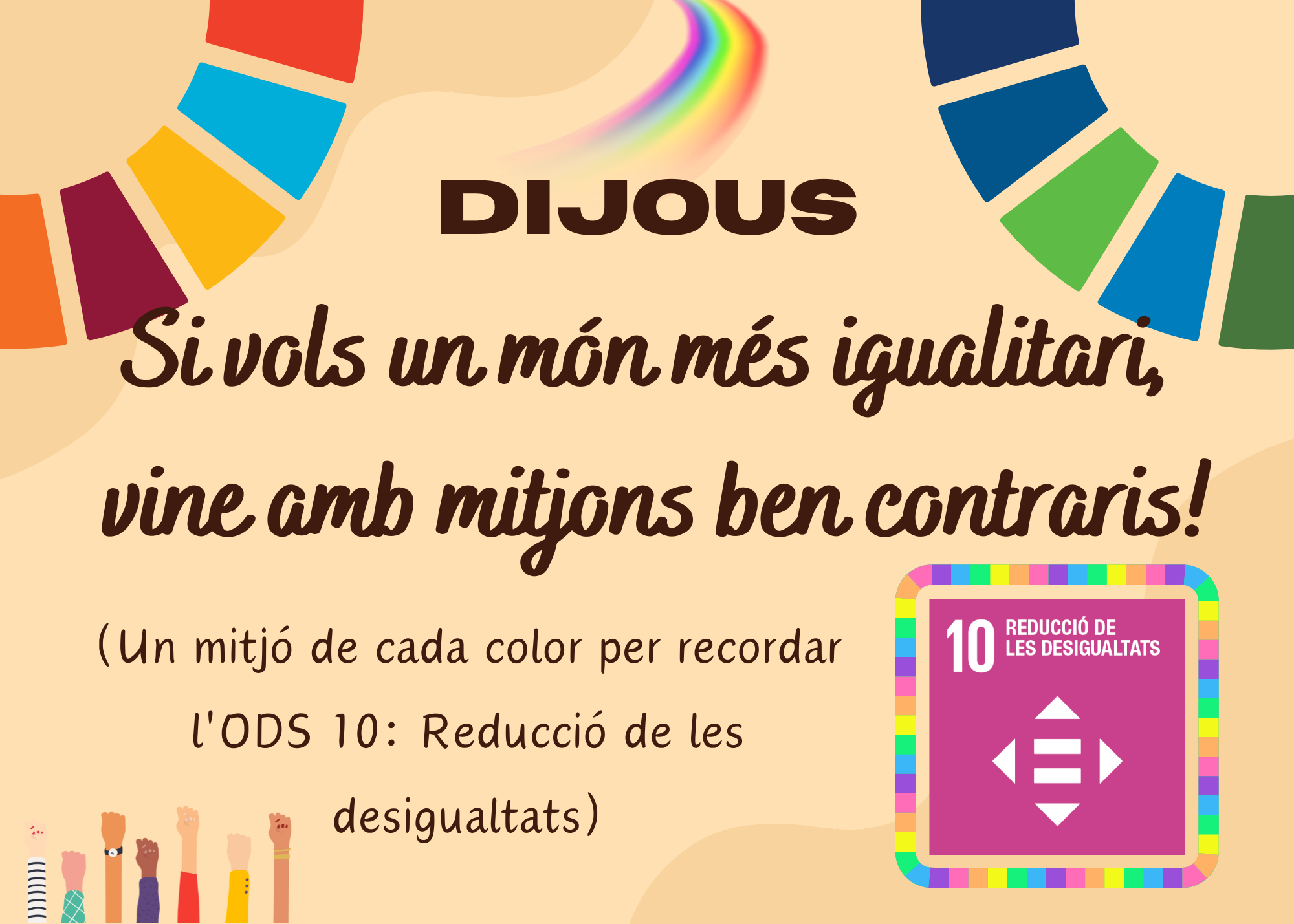 Així que dijous toca portar un mitjó de cada manera! Una petita acció per recordar l’ODS 10: Reducció de les desigualtats, perquè, per molt diferents que siguem, tots tenim dret a les mateixes oportunitats.