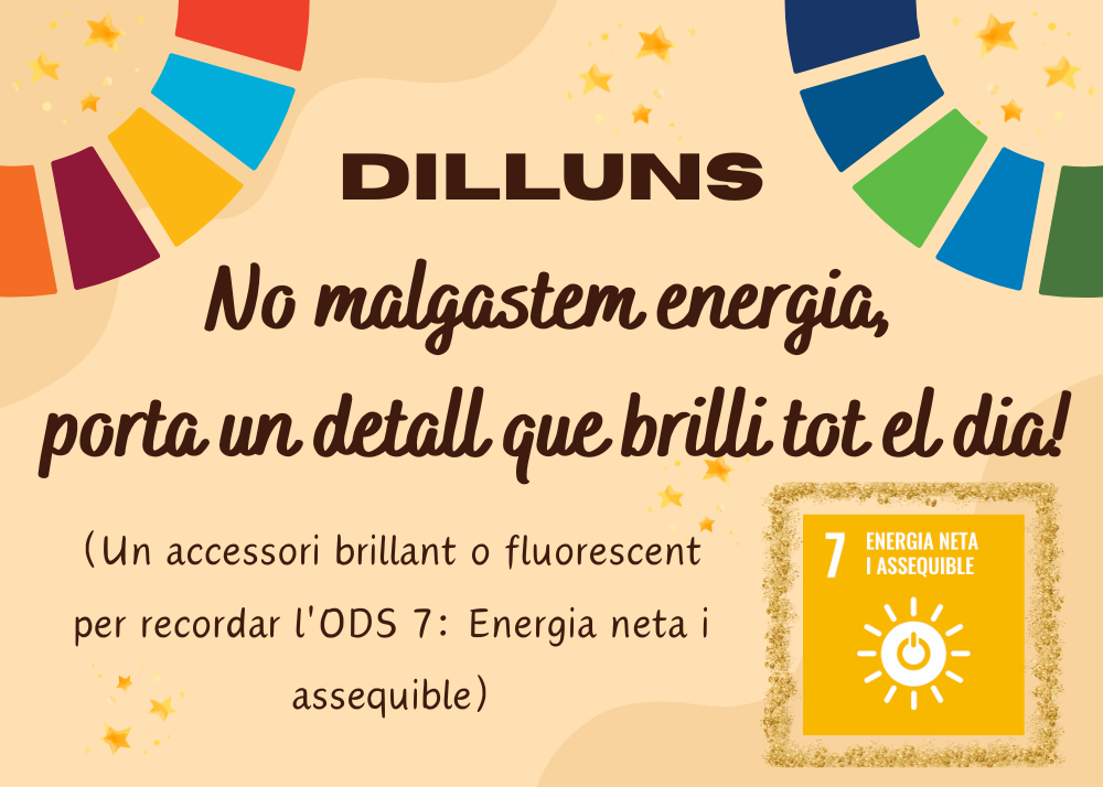 24/02/25Avui hem començat la setmana amb molt d’estil i brillantor! Seguint l’ordre del Rei Carnestoltes, tothom ha vingut ben brillant per l’ODS 7: Energia neta i assequible. Hem omplert l’escola de brilli-brilli, colors metàl·lics i materials reflectants, recordant la importància de les energies renovables i d’un futur més sostenible.