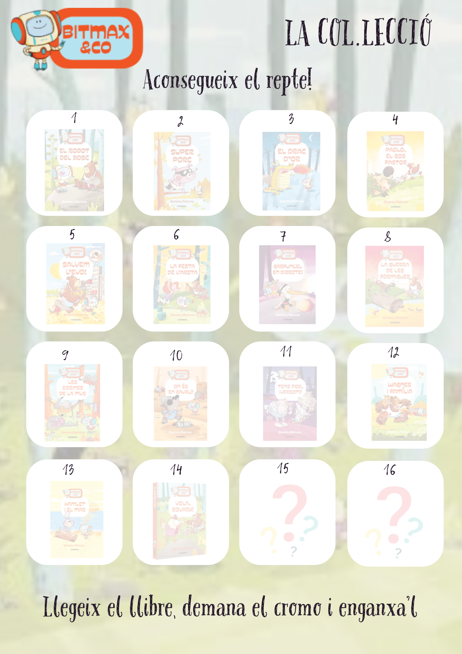 Aquesta setmana, a més, comencem amb un nou repte per aquells/es que estan començant a introduir-se en el món de la lectura. Ara també poden aconseguir l’àlbum i els cromos dels llibres de Rob&Ot.