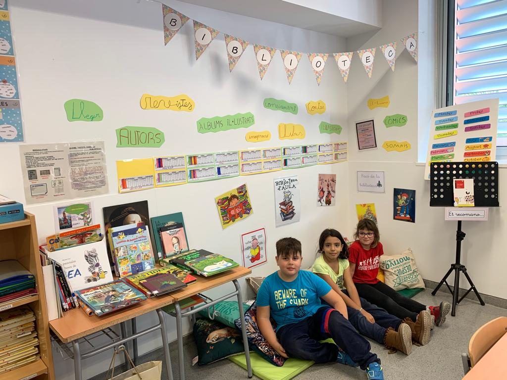 Cada classe ha creat el seu raconet de biblioteca  per passar una bona estona de lectura. Les biblioteques d’aula estan dotades de contes, revistes, llibres de coneixements, d’imaginació… Al voltant d’aquesta biblioteca es fan diverses activitats: préstec, lectura individual, recomanacions,…