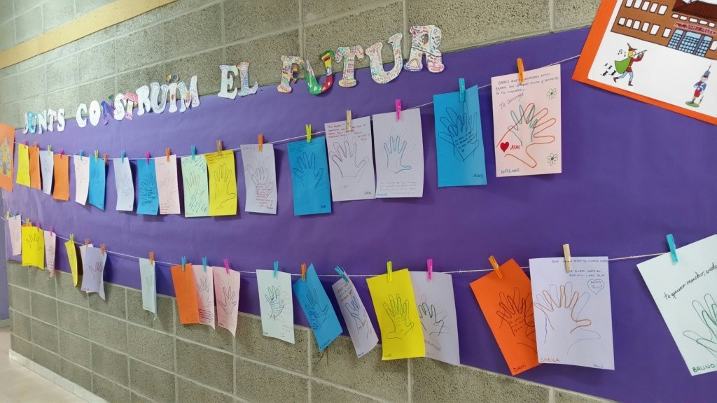 Els alumnes de Cicle Inicial hem dibuixat les nostres mans i se’ns han unit les de les nostres famílies. Quina sorpresa quan hem vist els missatges que els pares i mares ens han escrit!