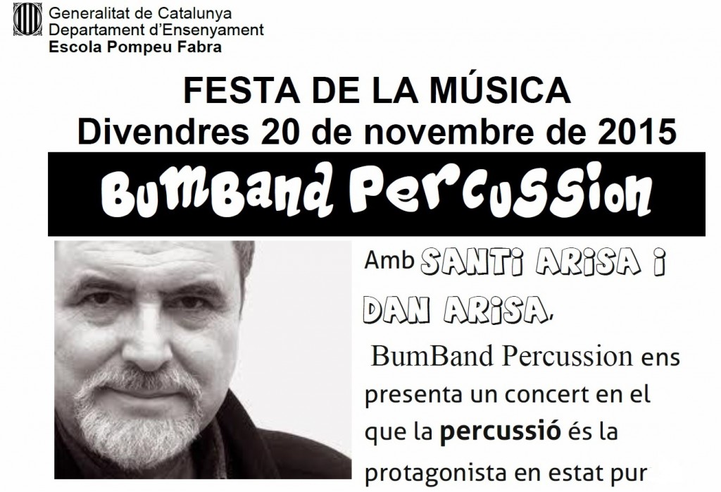 El proper divendres 20 de novembre celebrarem la Festa de la Música a l’escola. Enguany, s’ha programat un concert, que compta amb un gran músic percussionista, amb una llarga trajectòria i reconeixement musical a nivell de Catalunya. L’escola tindrà aquest privilegi i ho hem fet extensiu a totes les famílies, convidant-les a l’actuació de: BUMBAND PERCUSSION […]