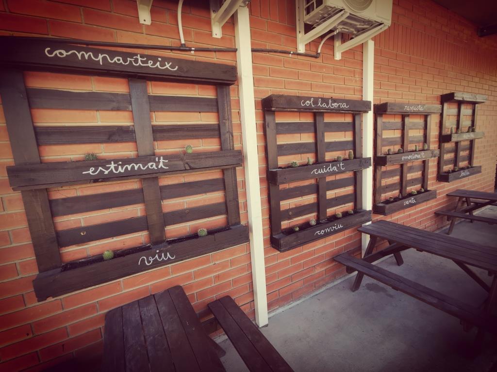 Cada nivell s’encarrega de la cura i manteniment d’un dels espais verds del centre. L’alumnat de 4t és l’encarregat de cuidar de l’espai verd de la rampa d’accés a les seves aules. Avui, han arreglat els palets de plantes, plantant diferents cactus, posant terra, regant… i han col.locat unes paraules boniques ben motivadores. Poc a