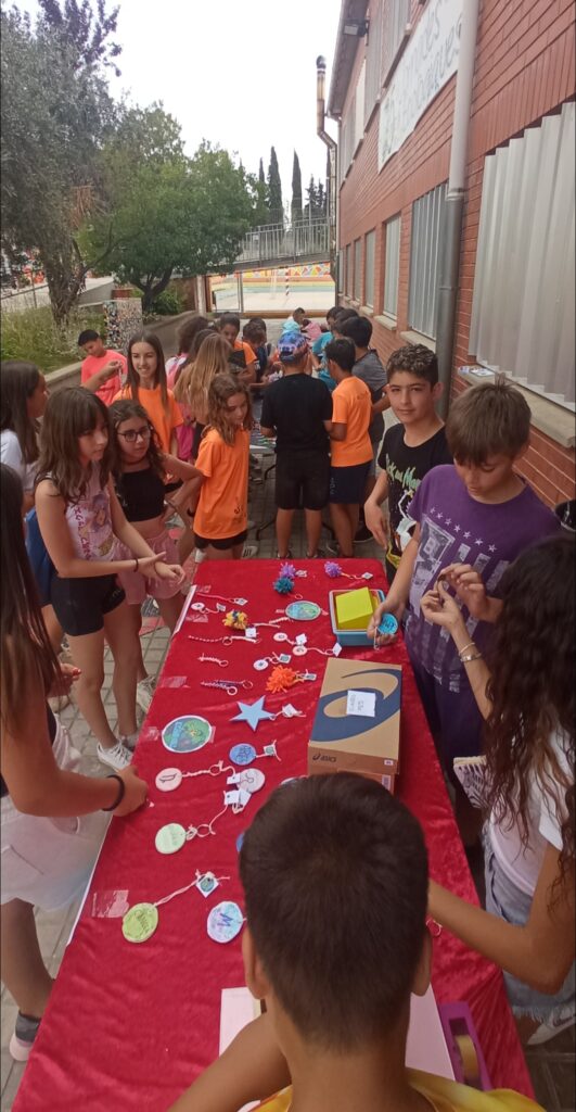 El dimarts 14 de juny els nens i nenes de sisè vam vendre els nostres productes d’emprenedoria. Per poder-ho portar a terme l’escola ens va fer un préstec de 50 € per poder comprar tot el material per elaborar-los. Un cop feta la venda els hem retornat. La classe de 6èA ha elaborat llibretes (Happy notes) i clauers dels