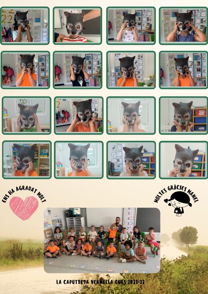 Les Caputxetes Vermelles volem donar les gràcies al pare del Manel, el Manel, per haver creat per la nostra aula una preciosa màscara de llop. Ha sigut un gran detall i que no tan sols ho gaudirem nosaltres, sinó també les futures Caputxetes que vindran. Moltes gràcies, detalls com aquests són els que fan gran