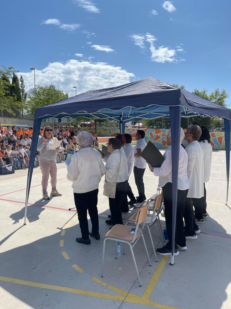 Divendres 19 de maig vam rebre a l’escola una visita molt important. Els avis i àvies de la Coral del Casal de la Gent Gran ens van oferir un repertori de cançons que s’han après per a l’ocasió. Vam viure uns moments molt emotius, conduït per l’Esther (encarregada del grup d’avis i exmare de l’escola)