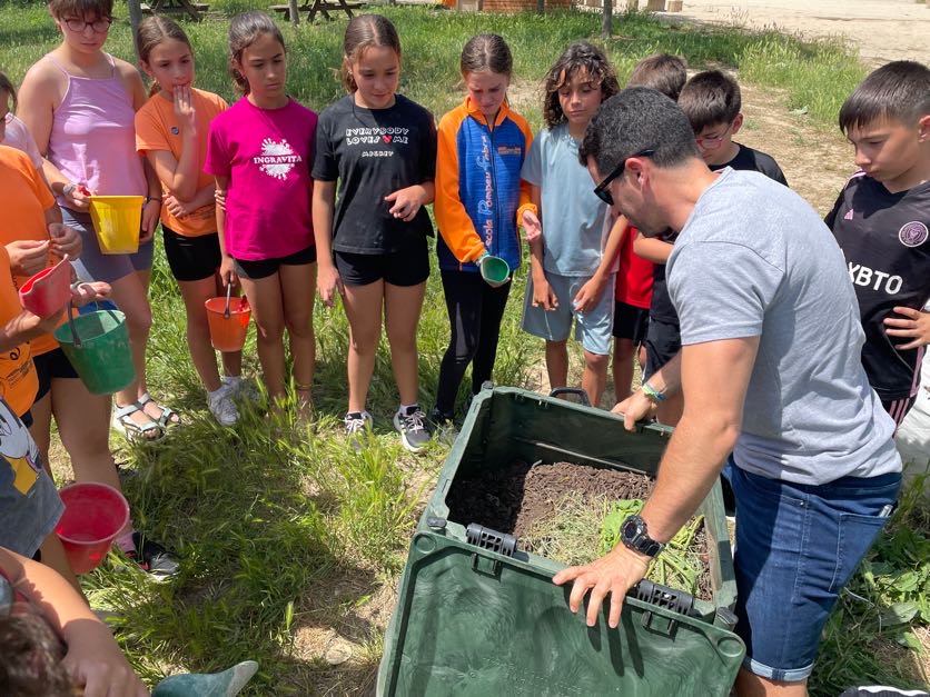 Dins del projecte d’Escola Verda, una de les activitats i tasques mediambientals que fem ja de fa anys, és la realització de tot el procés per aconseguir compost amb el nostre compostador de l’escola. A partir de les restes orgàniques de fruita i verdura del menjador, hem anat abocant i remenant les restes orgàniques, al