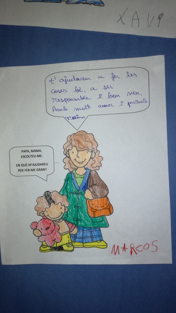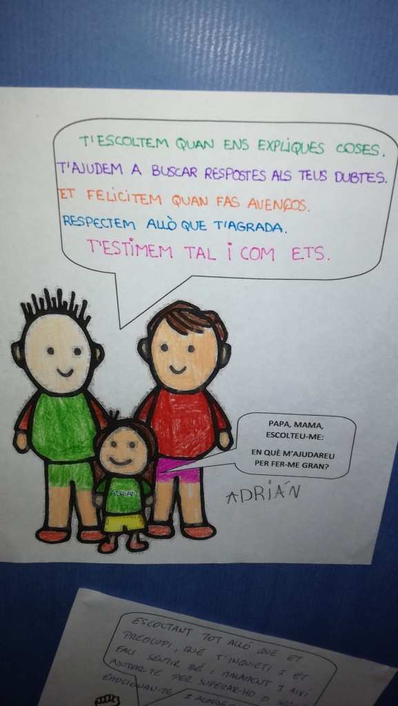 Amb l’objectiu de fomentar el vincle pare/mare i fill i de començar el treball d’escoltar-nos els uns als altres, els diferents nivells van proposar activitats ben diverses als pares/mares que van assistir a la reunió. Els pares/mares de P3 van decorar una titella del personatge preferit del seu nen que els mateixos petits es van trobar a l’endemà a la classe, feta pel seu propi pare o mare! L’alumnat de P4 tenia preparat un dibuix de la seva famÃlia i posteriorment, el pare/mare va dibuixar al darrera al seu fill, una representació de la importà ncia de la famÃlia en l’educació dels petits. L’alumnat de P5 va resseguir les seves mans i van deixar missatges emotius pels seus pares, aquests van fer el mateix i van deixar els seus missatges perquè se’ls trobessin l’endemà . L’alumnat de 1r i 2n, van editar un vÃdeo pels pares on els hi demanaven, “Pare/mare, escolteu-me, en què m’ajudareu per fer-me gran?”, els pares/mares van respondre a la seva pregunta amb una imatge d’una famÃlia amb l’objectiu que el seu fill/a rebés l’estimació dels seus pares en aquest escrit. L’alumnat de 3r i 4t van escollir el millor moment de l’estiu i fer-ne el dibuix, després els pares/mares havien d’endevinar-lo i fer-ne el seu dibuix del seu millor moment, amb l’objectiu de demostrar que qualsevol moment, per molt simple que sembli, pot ser el millor i més significant pels nostres fills. Els més grans, l’alumnat de 5è i 6è van col·locar les seves fotos al voltant de l’emoticono de la felicitat, amb l’objectiu de representar la necessitat de venir feliç a l’escola i aconseguir que tothom es senti bé. Al costat de les seves fotos, els pares/mares hi van col·locar imatges de frases de creixement personal que els motivessin i els identifiquessin amb l’objectiu que, a l’endemà , trobessin aquelles paraules que els seus pares/mares pensen que necessiten per motivar-se i sentir-se el millor possible emocionalment.