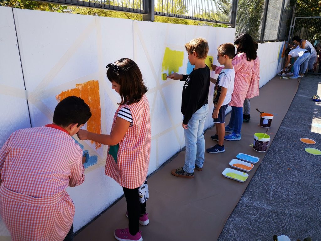 Cal destacar l’agraïment al grup de mares i pares que, dies abans a l’inici de curs, se’n van encarregar de pintar-nos tota la paret de color blanc per poder pintar nosaltres a sobre. Gràcies famílies col·laboradores!!!